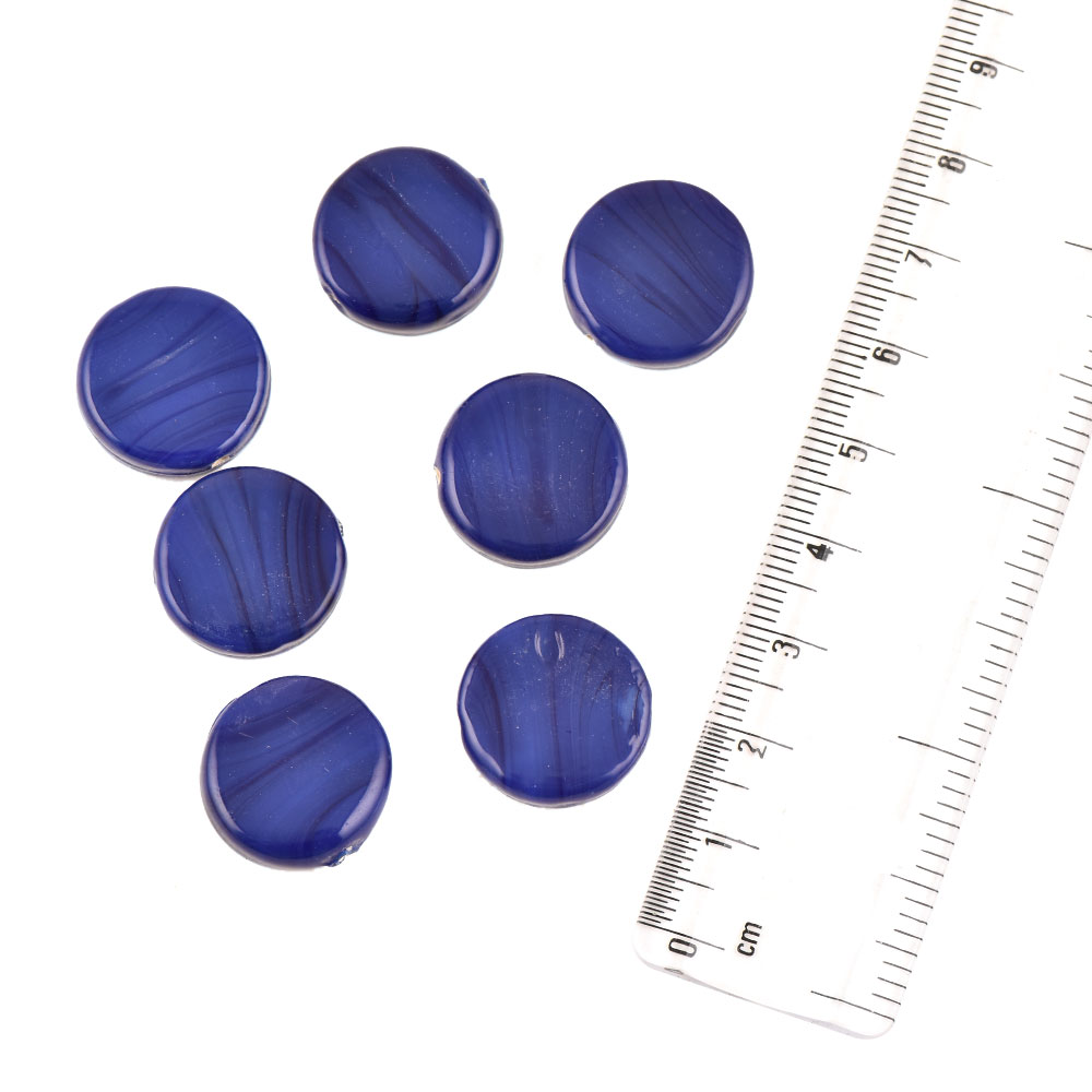 Navy Blue Lines Coin Shape Loose Glass Beads For Jewelry Making (12 in Pack)