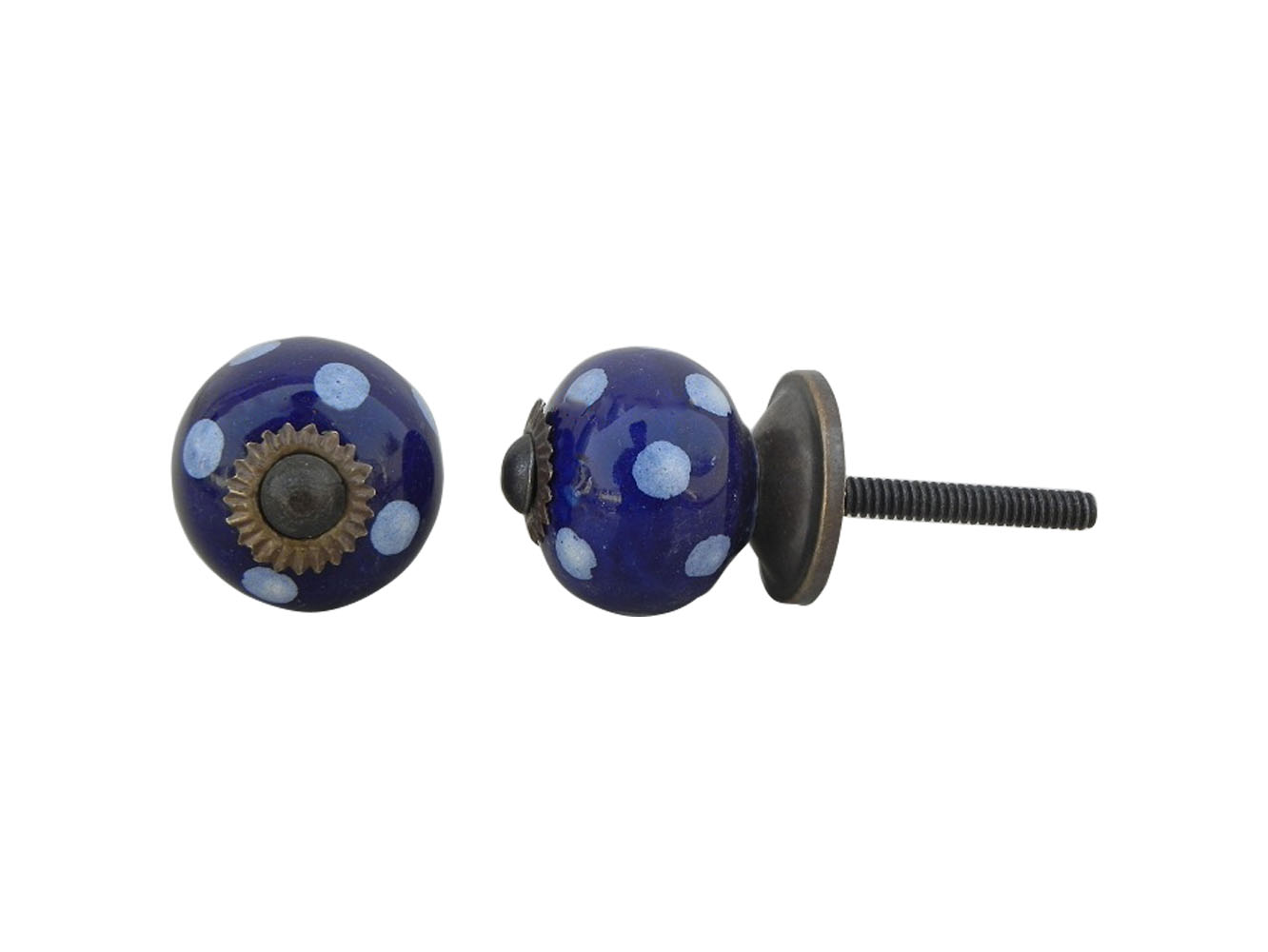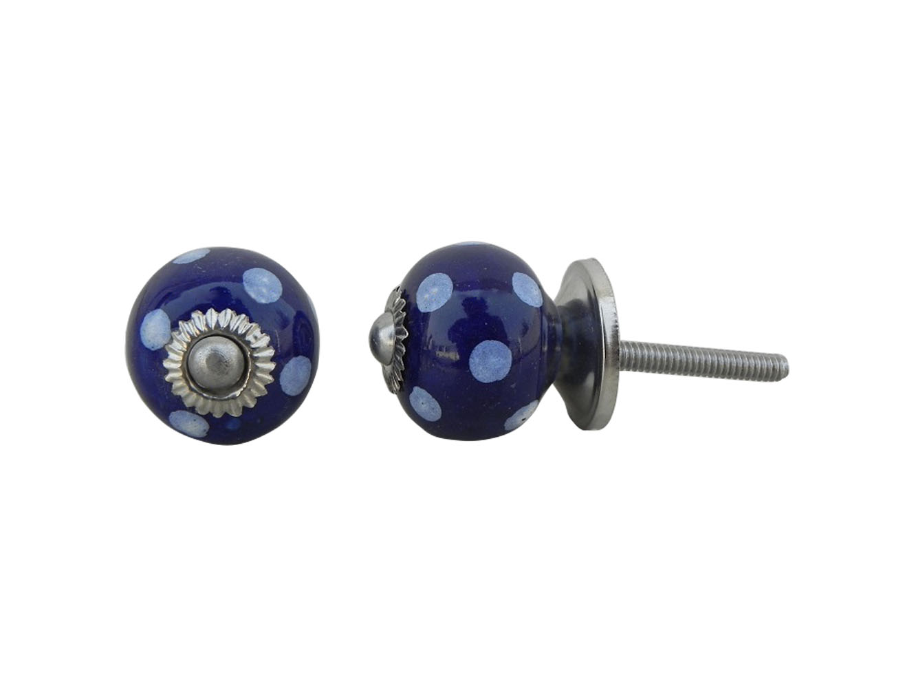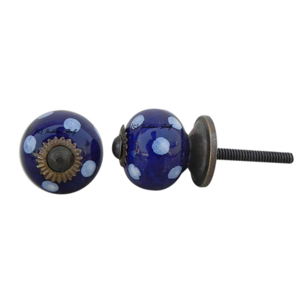 Navy Blue Polka Small Ceramic Knob
