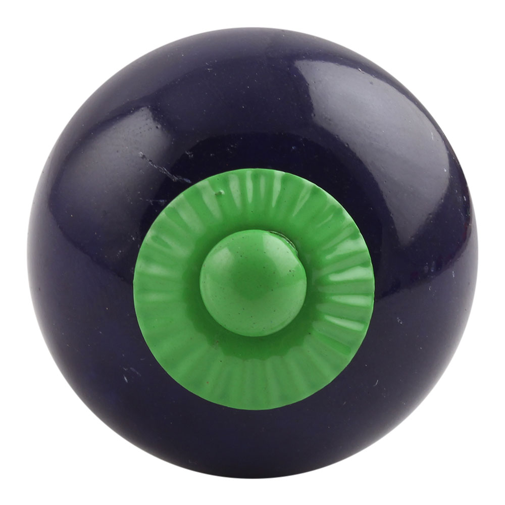 Navy Blue Round Green Fitting Ceramic Knob