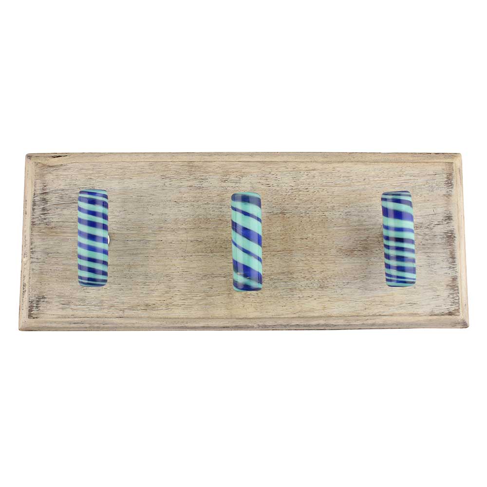 The Navy Blue Striped Tube Glass Wooden Hook is a handcrafted fusion of artisan glass work and everyday practicality. Featuring a hand-blown glass tube in rich navy blue with clean white stripes, this wall hook stands out as a decorative accent and a reliable organizer. Mounted on a solid wood base, it combines eye-catching design with solid performance. Every hook is individually assembled, making each piece unique—an ideal choice for those who want their wall hooks to do more than just hold stuff.