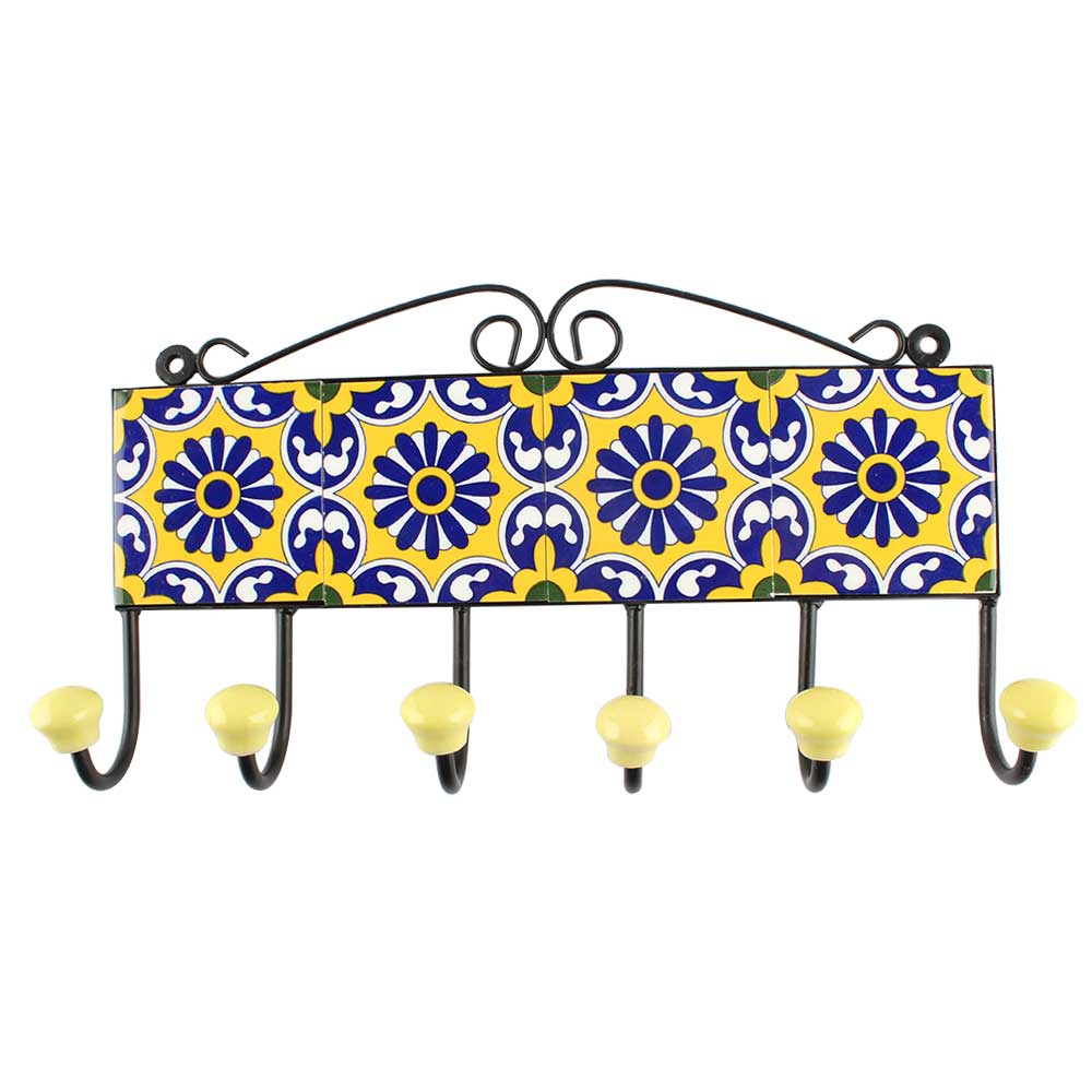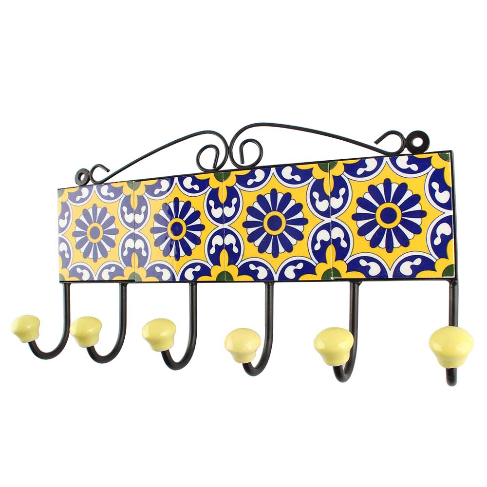 Navy Blue Sunflower Ceramic Tile Hook. When Put on Wall or Cabinet It is An Art in Itself. The Metal Part of this Hook is Black Powder Coated.
