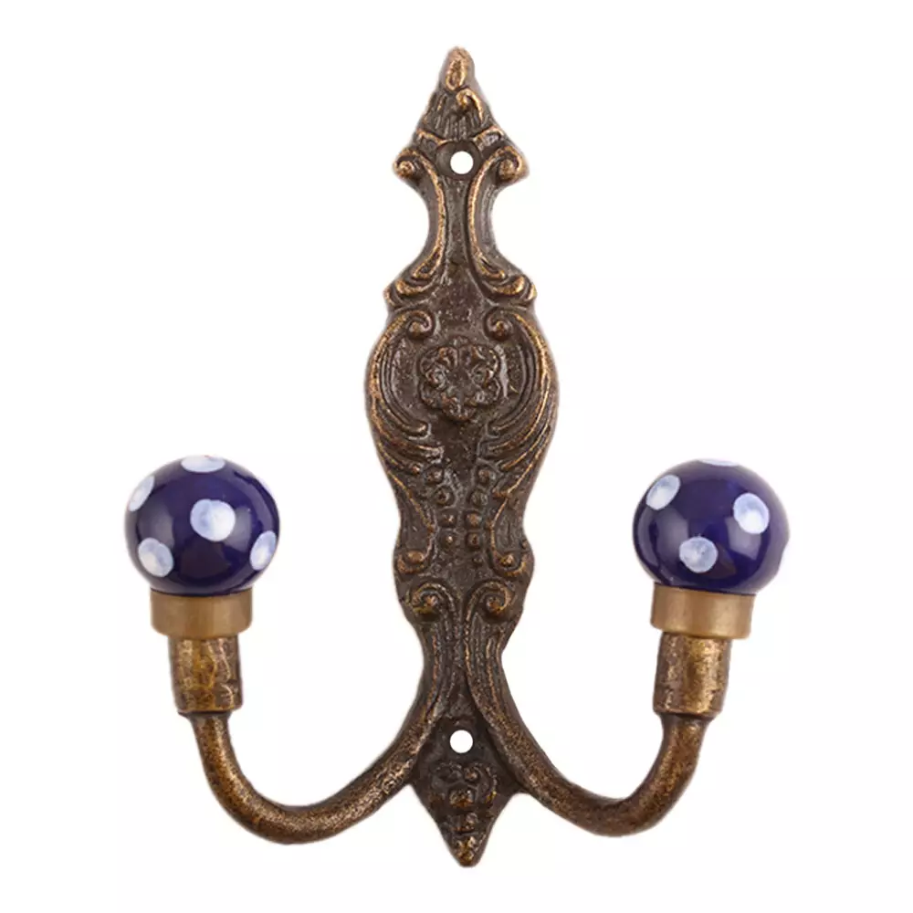 Navy Blue White Dot Ceramic Iron Hook. When Put on Wall or Cabinet It Gives A Sturdy Look. This Hook is Strong Enough to Hold Your Cloths, Keys, Tea Cups, Coffee Mugs, Hand Towels Etc