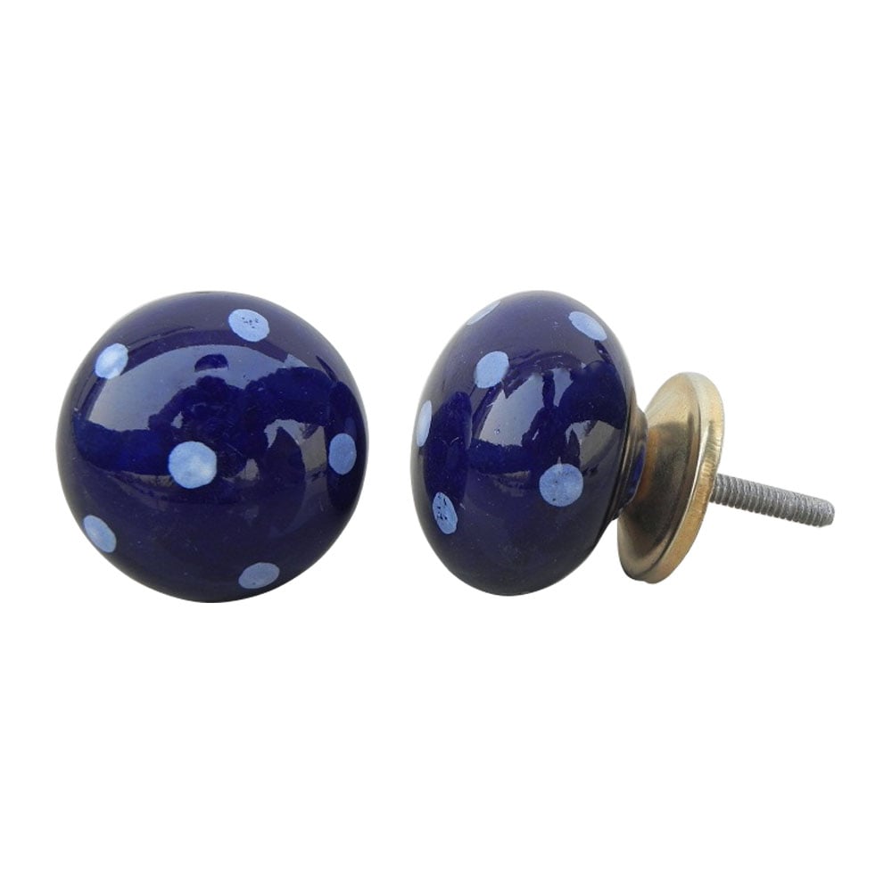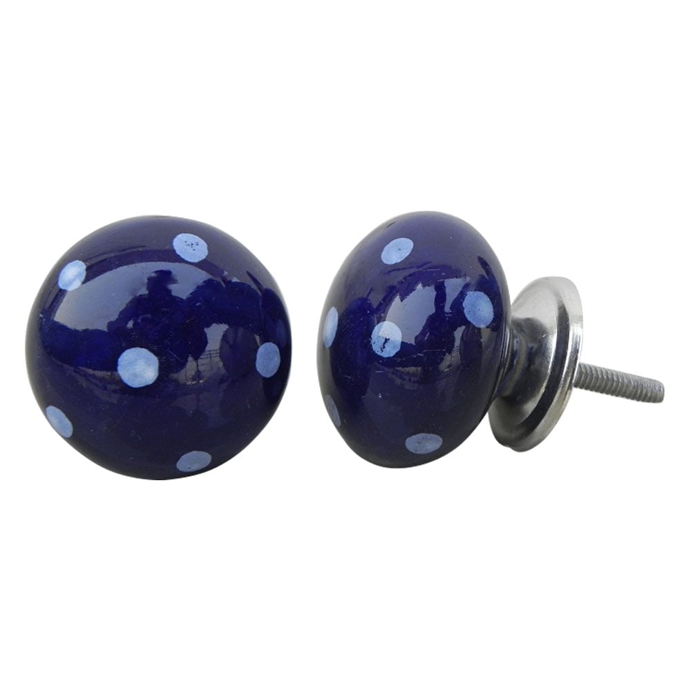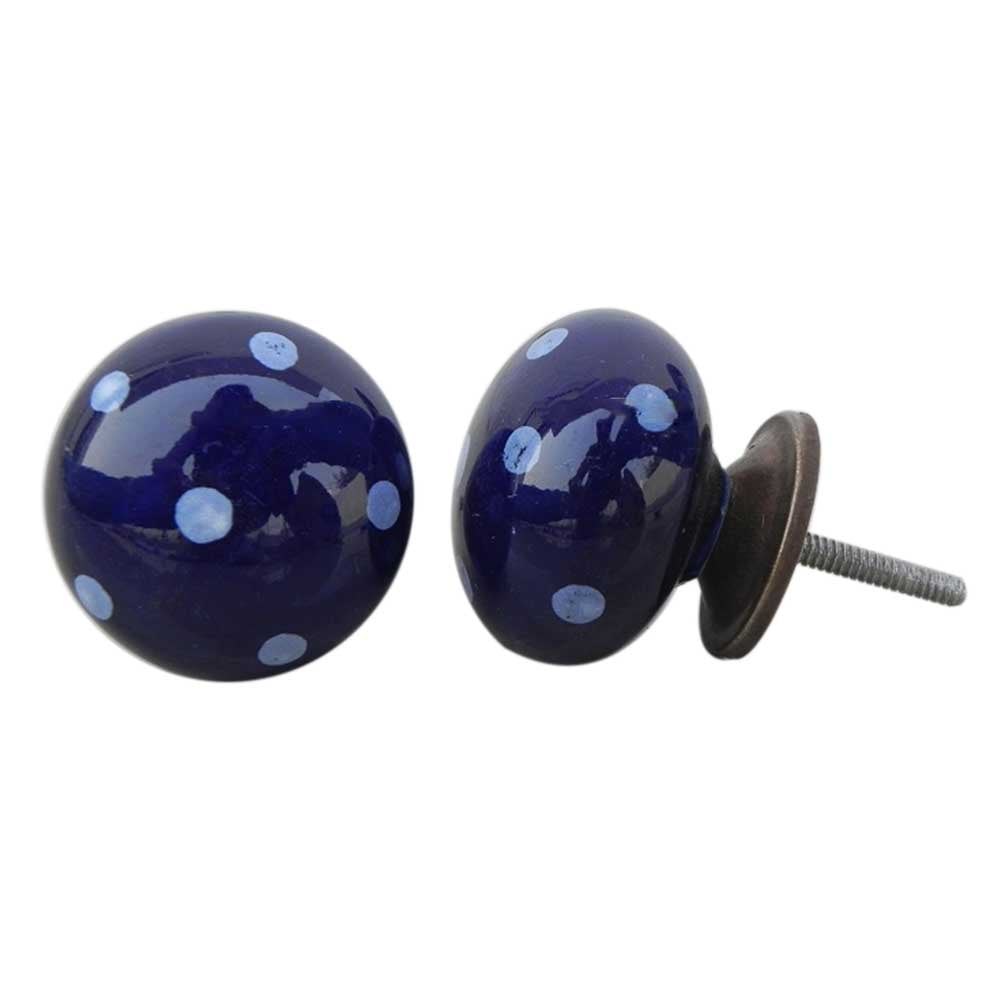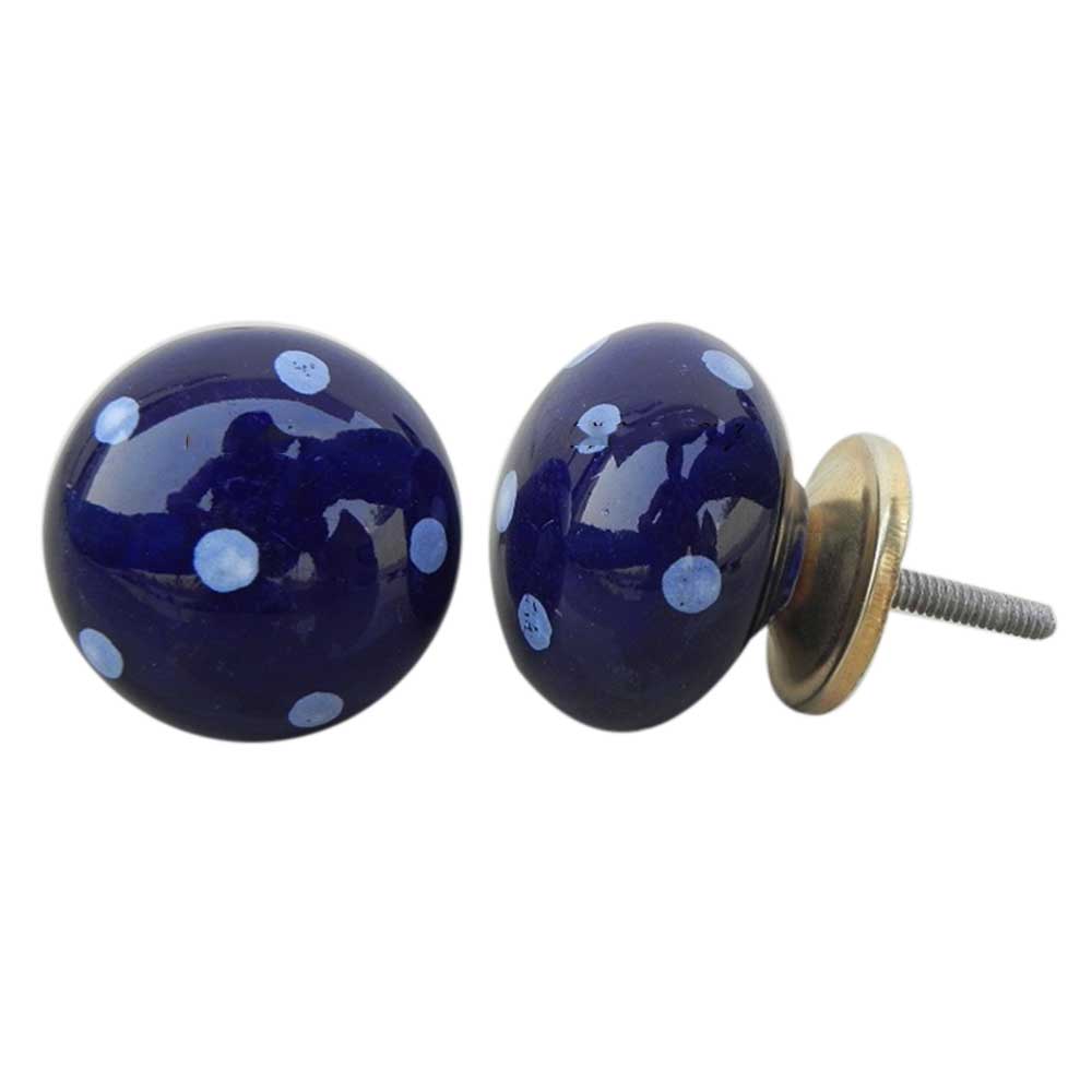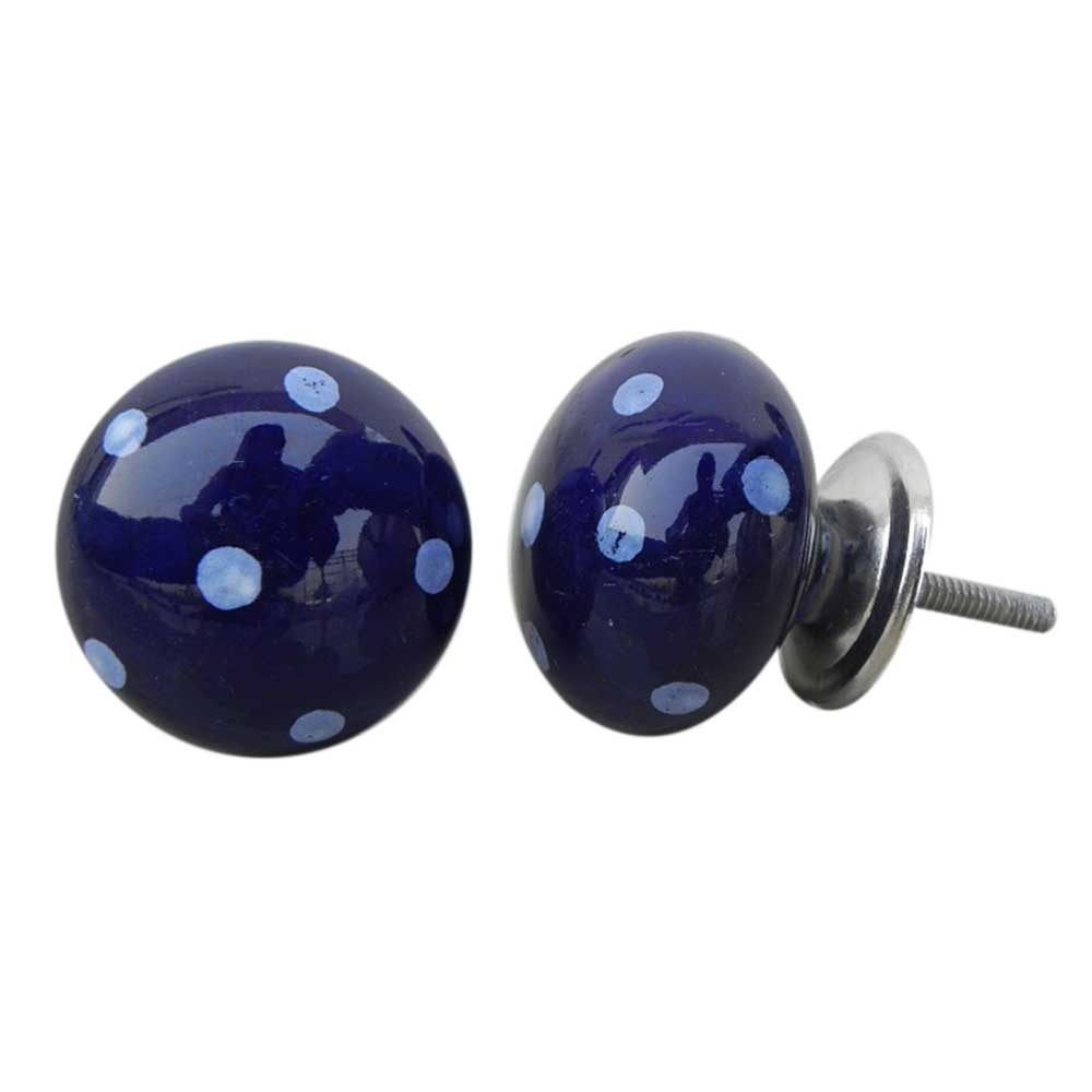 Navy Blue White Polka Round Knob