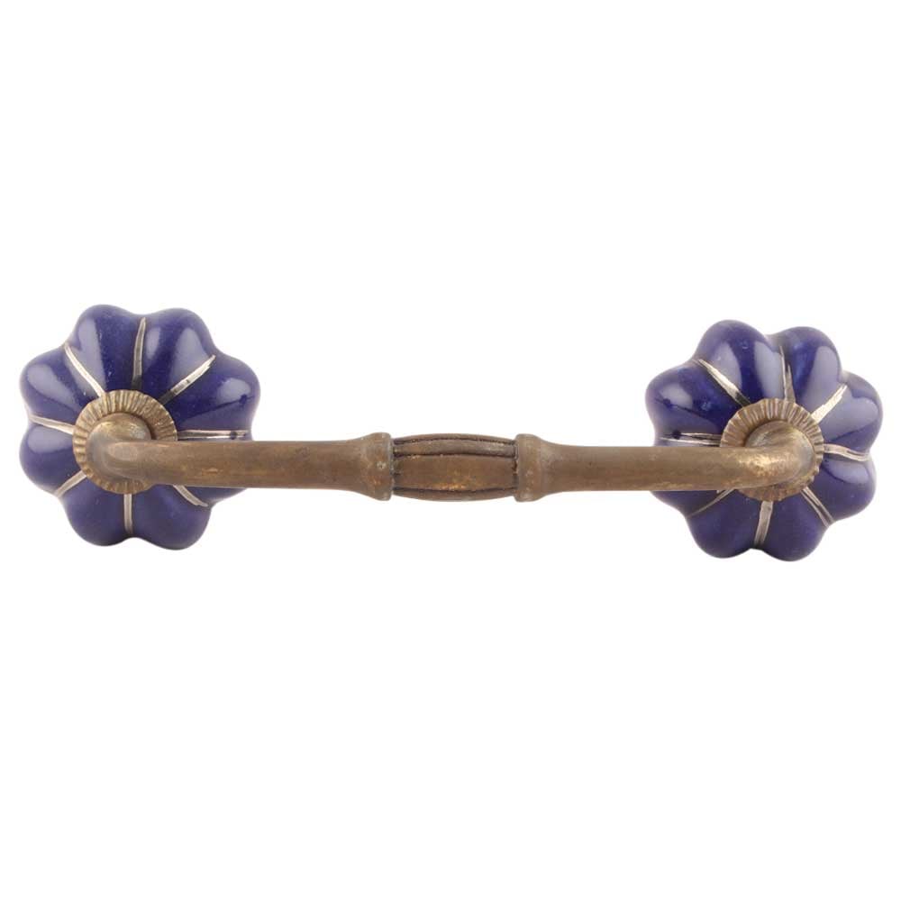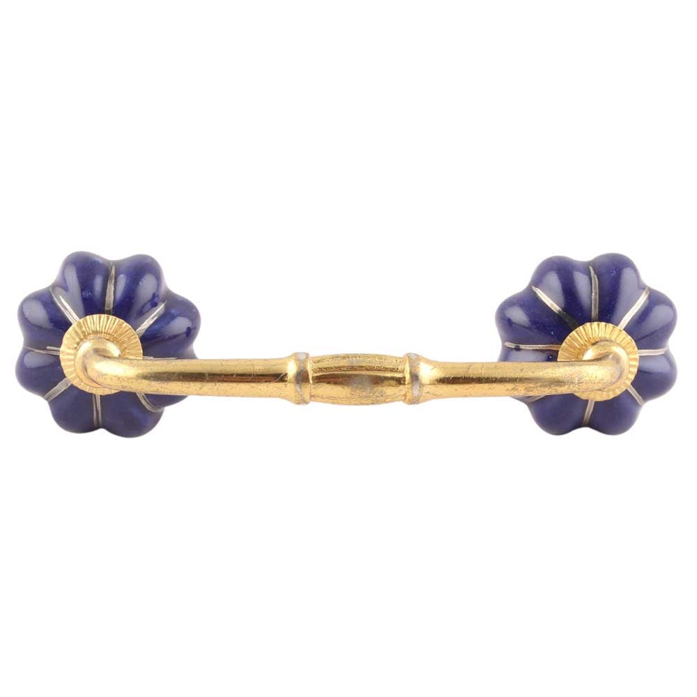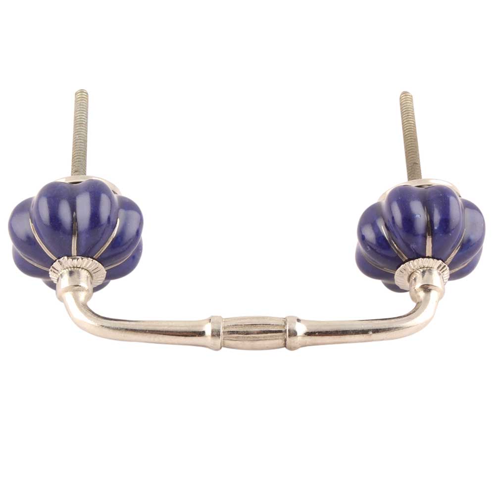 Navy Blue With Silver Line Medium Ceramic Bridge Handle. Ideal for Drawer, Dresser, Cabinet, Wardrobe, Cupboard and Almirah etc.
