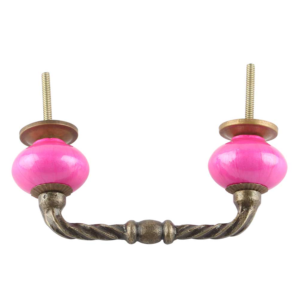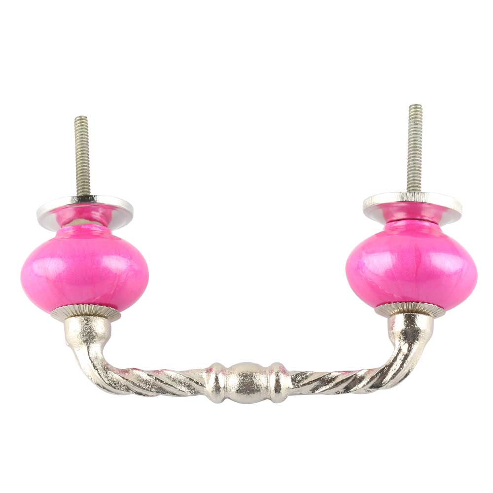 Neon Pink Ceramic Cut Bridge handles. Ideal for Drawer, Dresser, Cabinet, Wardrobe, Cupboard and Almirah etc.