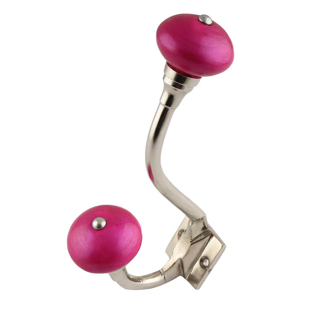 Material: Polished silver-tone iron + glazed ceramic Finish: Shiny silver base with vibrant neon pink ceramic Installation: Keyhole or screw mounting (hardware included)