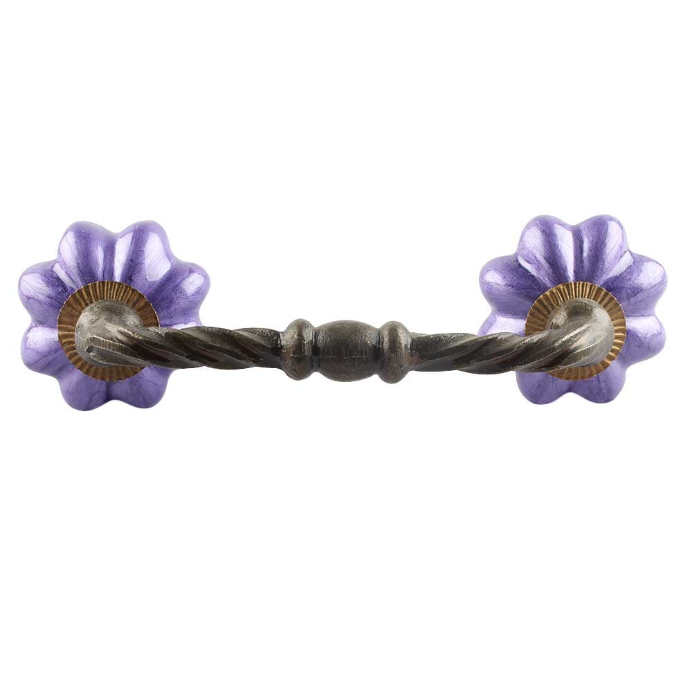 Neon Purple Ceramic Melon Cut Bridge Handle Online. Ideal for Drawer, Dresser, Cabinet, Wardrobe, Cupboard and Almirah etc.
