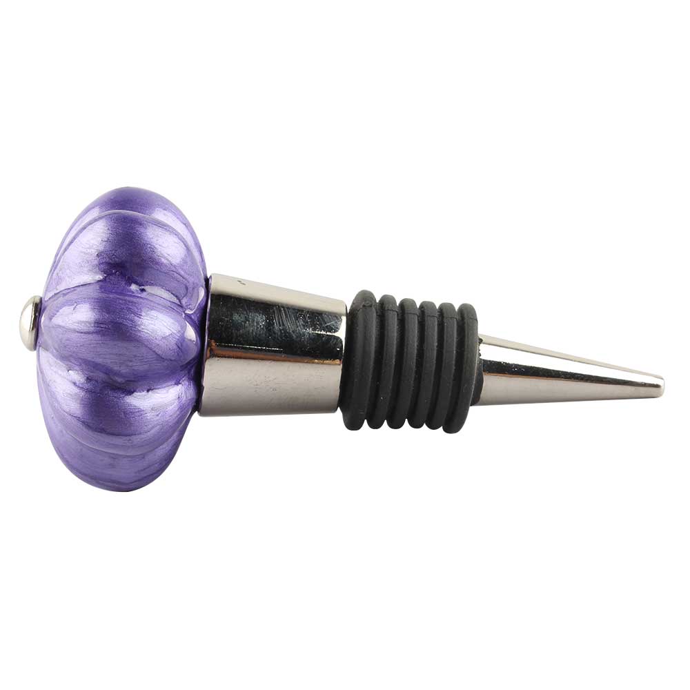 Neon Purple Melon Ceramic Wine Stopper. Zinc Alloy Wine Bottle Stopper with Attractive Jute Bag Packaging.