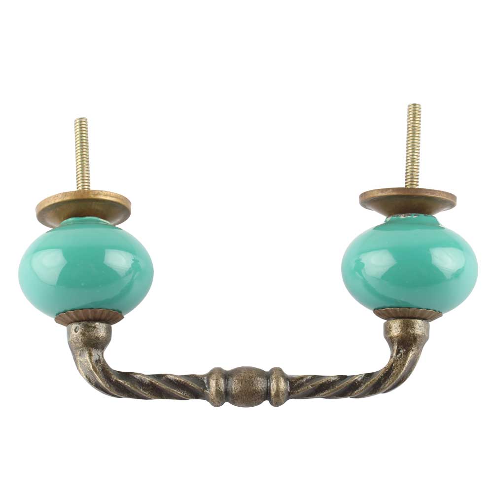 Neon Sea Green Ceramic Cut Bridge Handles. Ideal for Drawer, Dresser, Cabinet, Wardrobe, Cupboard and Almirah etc.