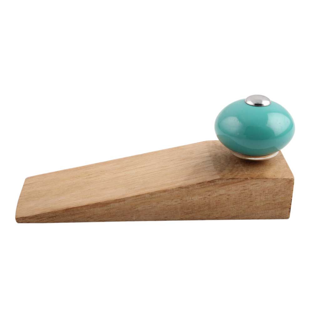 Handmade Ceramic and Wooden Door Stopper.Wooden Door Stopper with a Ceramic Knob to Carry it Easily. This Wooden Door Stopper has Glue Dots under it to Ensure that it does not Slip. It is Handmade by the Craftsmen of India and this Innovative Door Stopper won't Disappoint You.