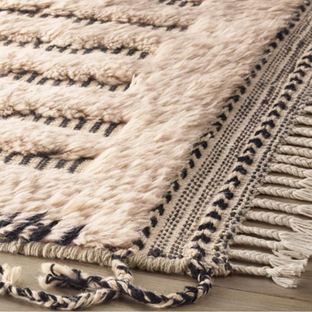 Each piece is handwoven by artisans, preserving Moroccan weaving traditions while offering a modern textured design. The beige tones and natural finish make it versatile, sustainable, and timeless.