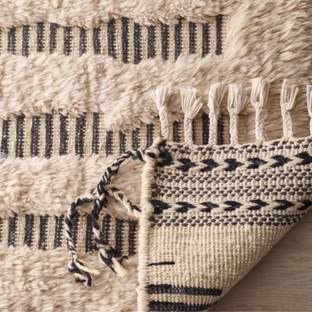 • Handmade rug with textured grid weave pattern