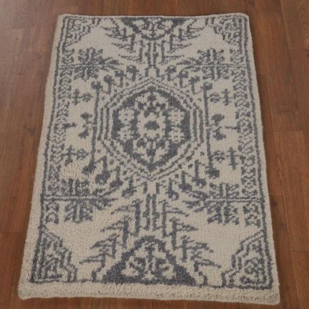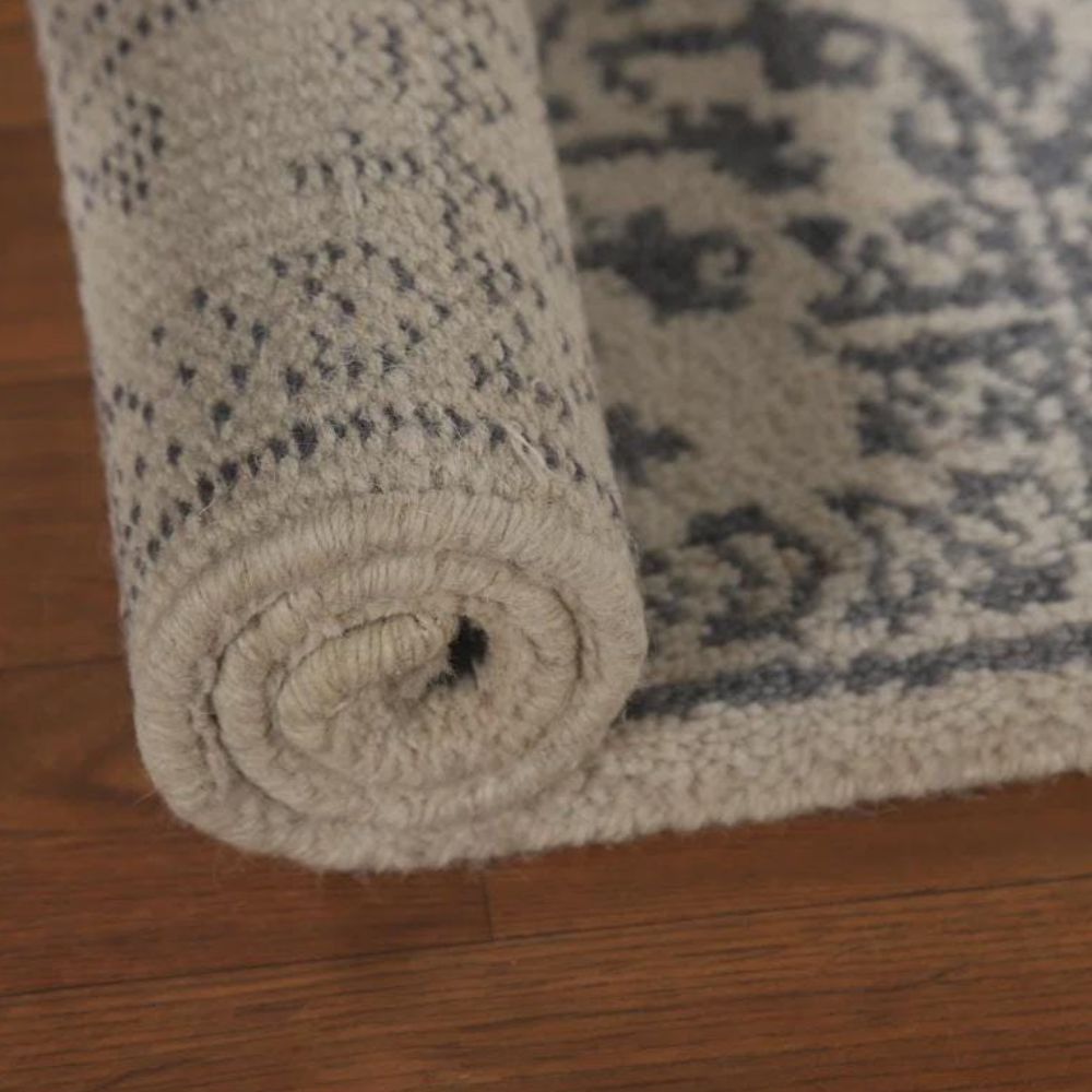 Material: Cotton, Wool. Color: Natural cream with grey pattern. Dimensions: 60.96 × 91.44 cm (36 inch base size). Weight: 6 kg. Other size options available. Origin: India. Safely packed and checked by Indianshelf.