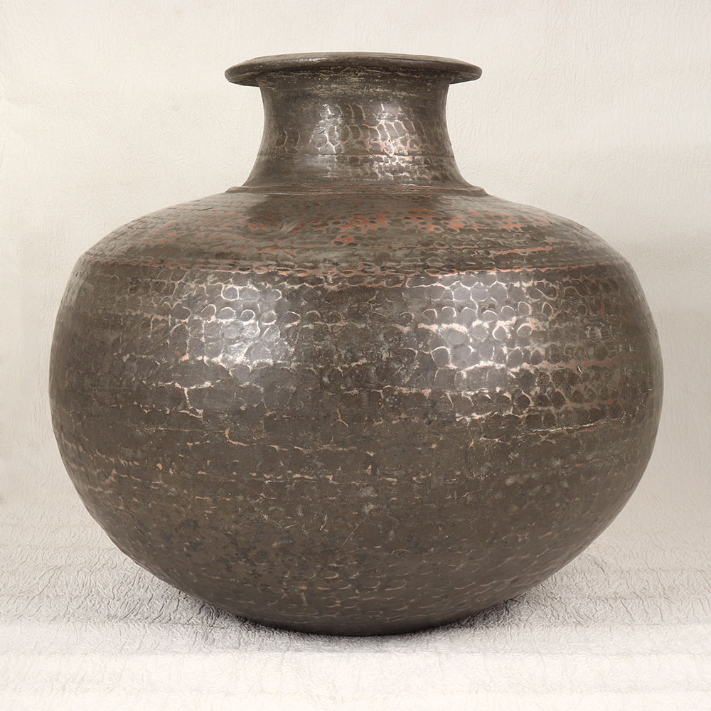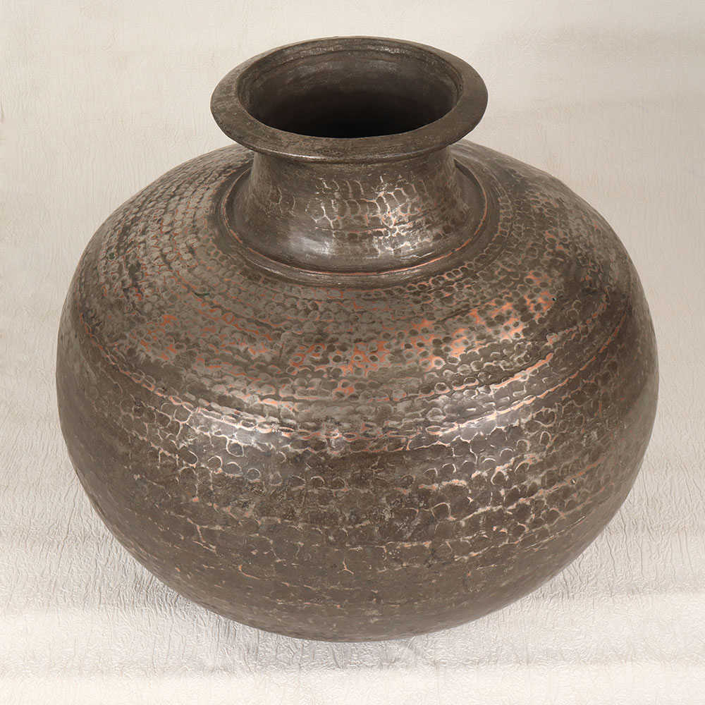 Buy a Vintage Copper Water Pot with Nickel Plating which is a testament to the timeless artistry of talented Indian artisans steeped in Islamic tradition. Meticulously crafted from high-quality copper, this unique water pot boasts a small mouth adorned with a captivating hammered design, reminiscent of the rich history of Islamic art. The nickel plating not only enhances the pot's durability but also adds a touch of sophistication to its appearance. The antique brown finish further accentuates its vintage charm, making it a perfect addition to any home, office, restaurant, hotel, or cafe. Its versatile design allows it to serve as an indoor flower pot, bringing a touch of nature and elegance to any space. This handcrafted masterpiece is not just a utilitarian item but a piece of history that can be seamlessly integrated into a vintage collection. The pot makes for an ideal gift for your loved ones on special, festive, or auspicious occasions, reflecting both cultural heritage and artistic finesse.
