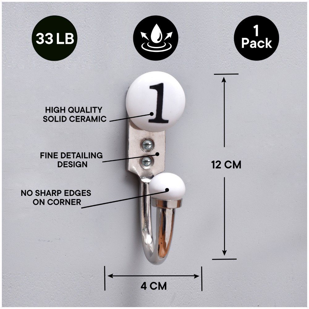 1 Flat Ceramic Hook. When Put on Wall or Cabinet It is An Art in Itself. This Hook is Strong Enough to Hold Your Keys, Tea Cups, Hand Towels, Cloths Etc.
