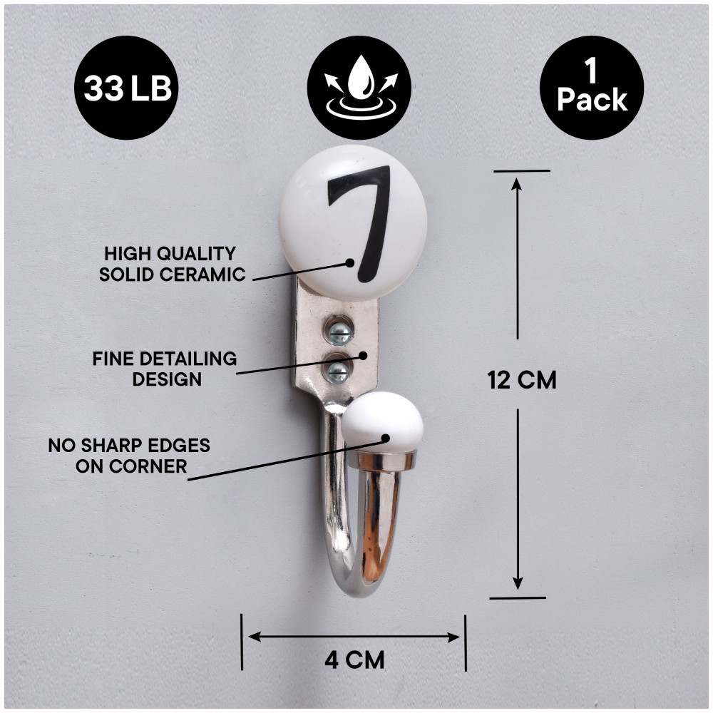 7 Flat Ceramic Hook. When Put on Wall or Cabinet It is An Art in Itself. This Hook is Strong Enough to Hold Your Keys, Tea Cups, Hand Towels, Cloths Etc.