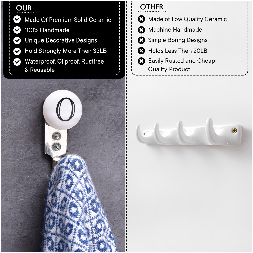 O Flat Ceramic Hook. When Put on Wall or Cabinet It is An Art in Itself. This Hook is Strong Enough to Hold Your Keys, Tea Cups, Hand Towels, Cloths Etc.