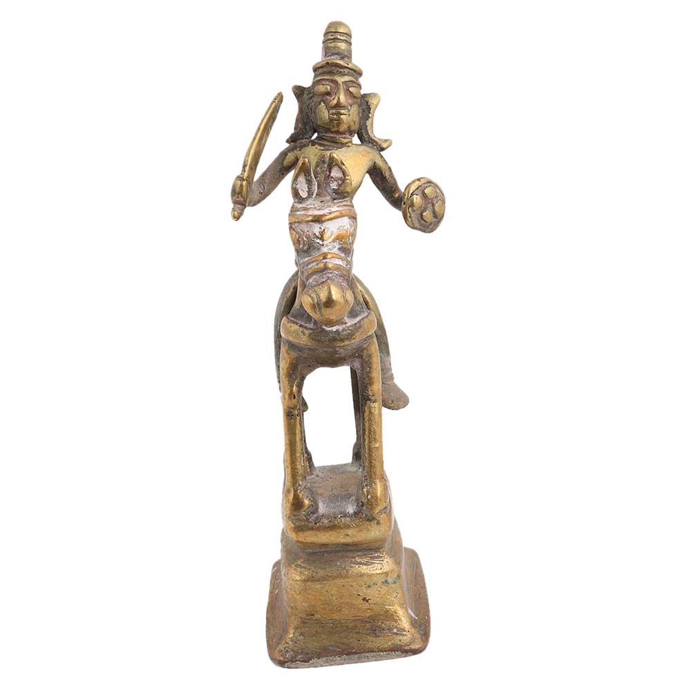 • Odd Used Brass Statue Of Indian God Riding A Horse