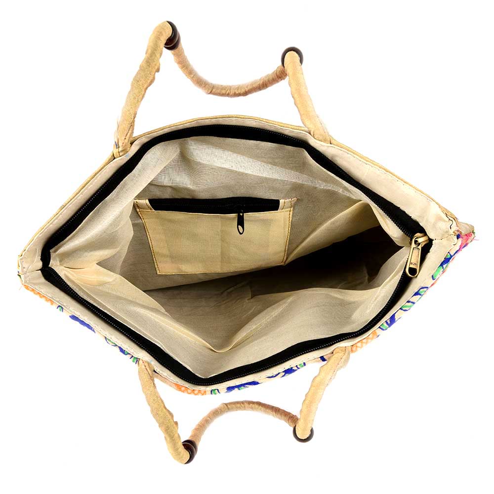 Off White Cotton embroidered Shoulder bag with beautiful floral designs.Perfect everyday bag for all your things.