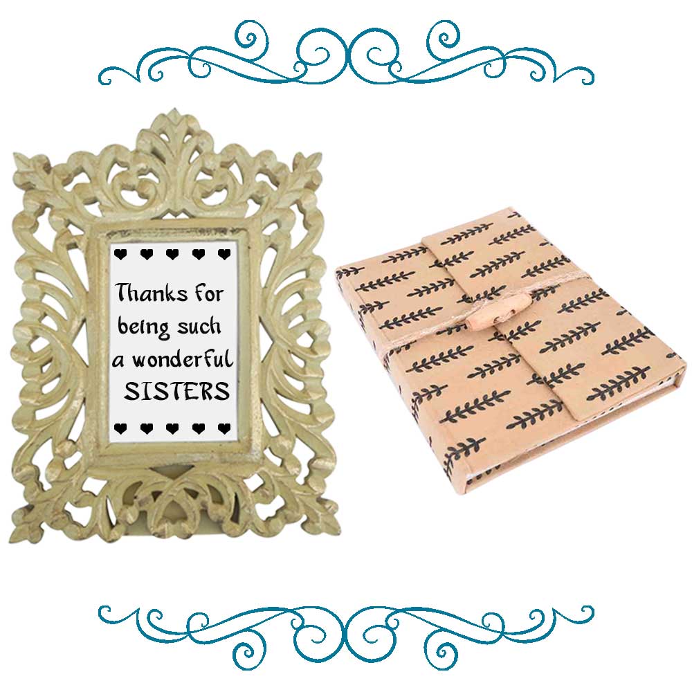 • Off-White Photoframe With Peach & Black Diary (Combo Pack)
