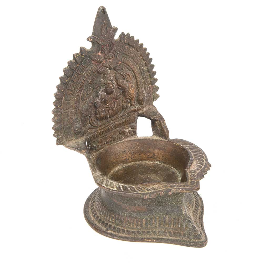 Oil Lamps Hand Cast in Bronze Alloy Depict An Image of Laxmi, Flanked by Two Elephants