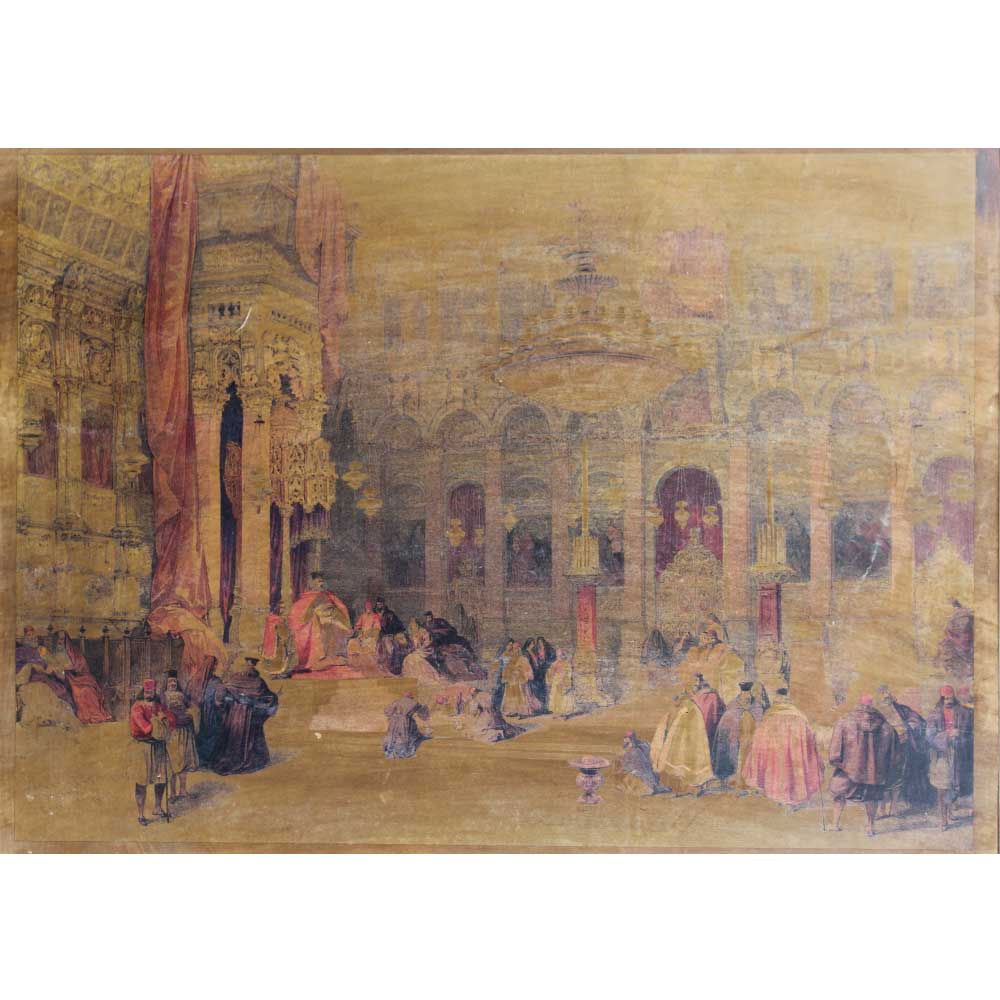 This is a old oil painting framed english men and women. The scenario depicts a typical Sunday afternoon in the working class, with people dressed up and dancing, drinking, and eating galettes late into the night.