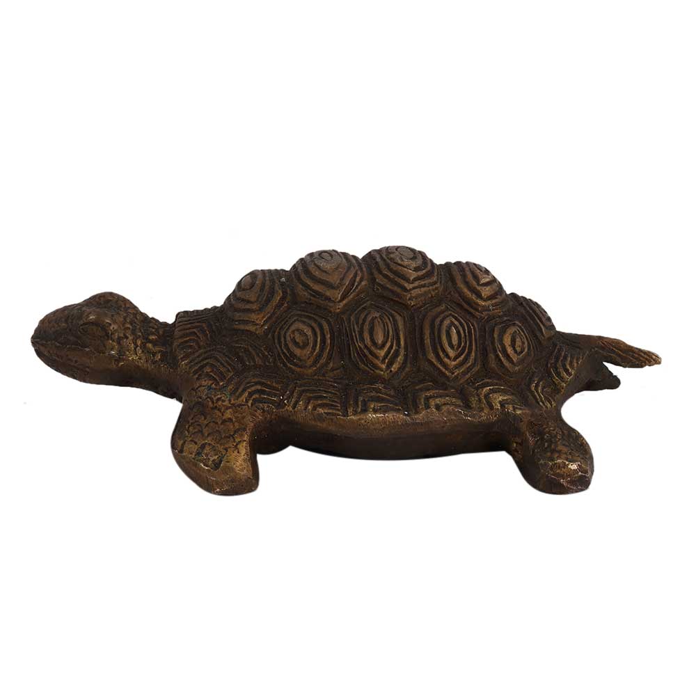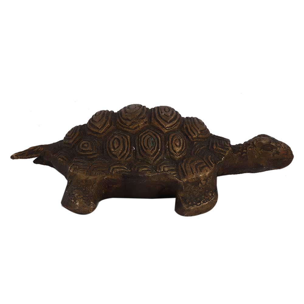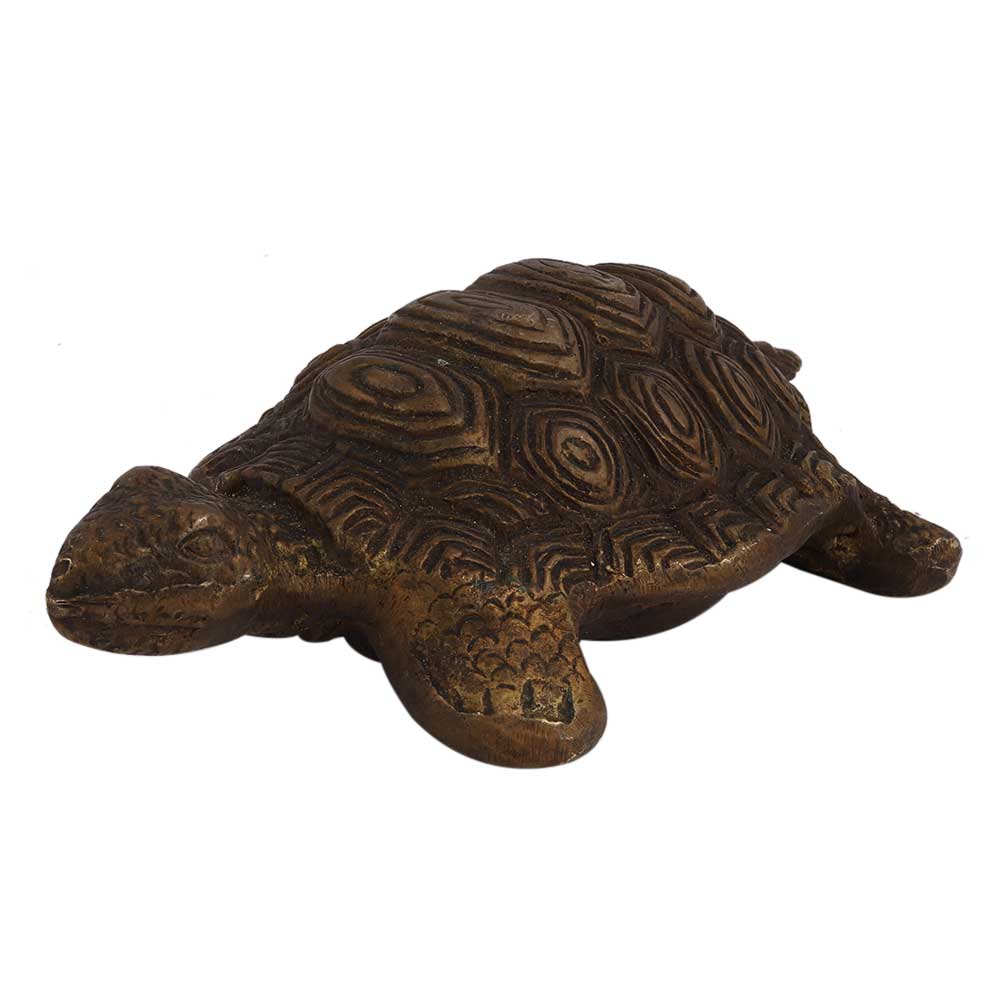 • Old Brass Engraved Tortoise Figurine With Shell