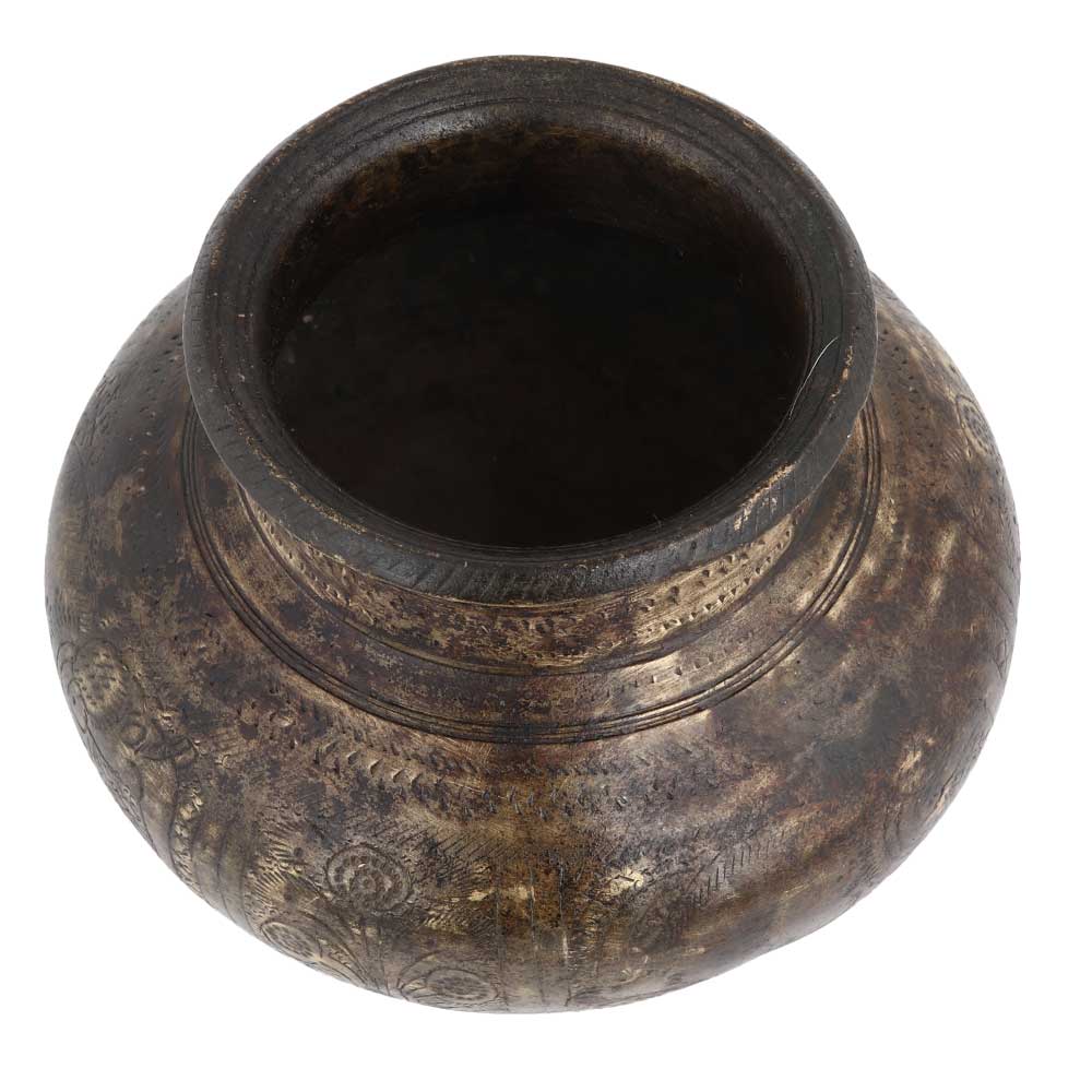 Old Brass Engraved Water Storage Pot