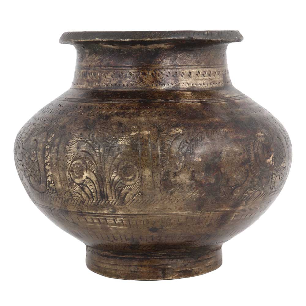 • Old Brass Engraved Water Storage Pot