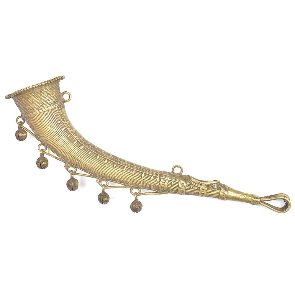 This Vintage Brass Trumpet that we offer is a real collector’s item. It has a beautiful shape with brass beads on one end and on the other side there are two loops by which you can hand the trumpet on the wall . Great gifting option for friends and relatives.