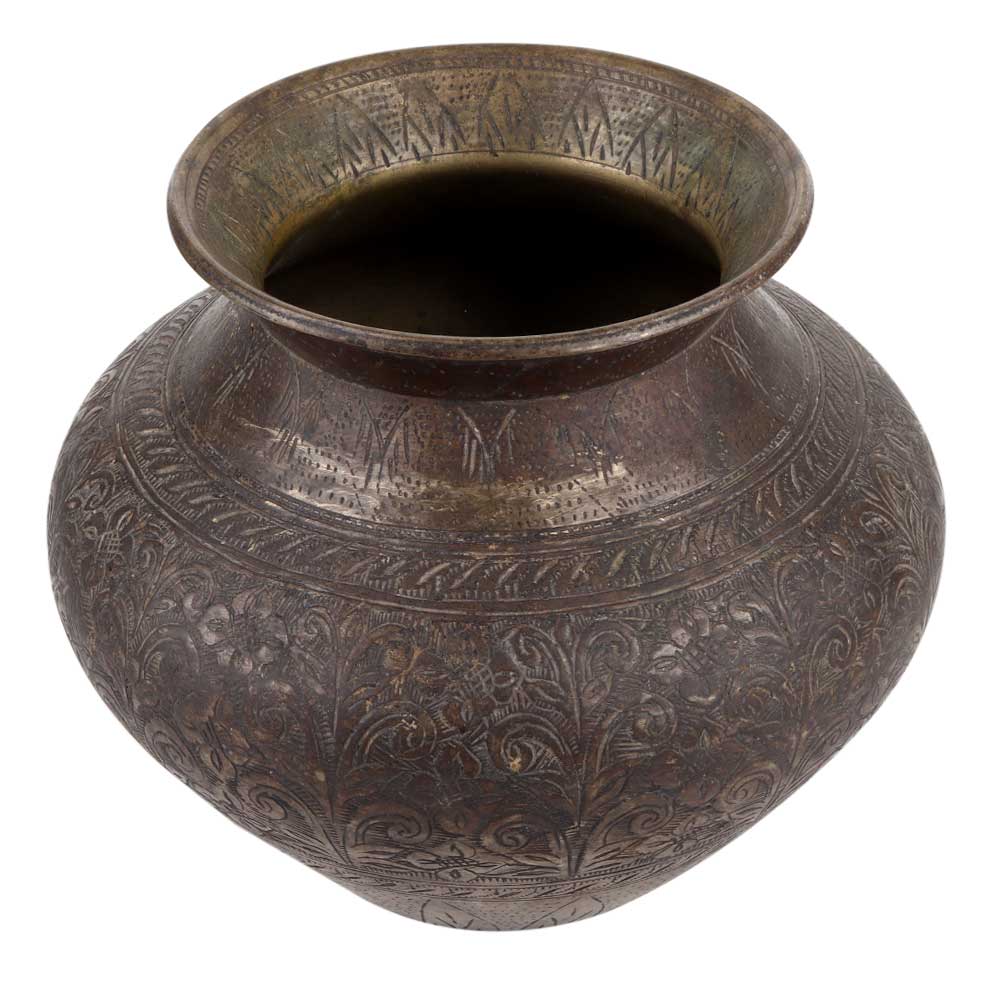 Old Brass Pot Engraved With Flowers And leaves Pattern