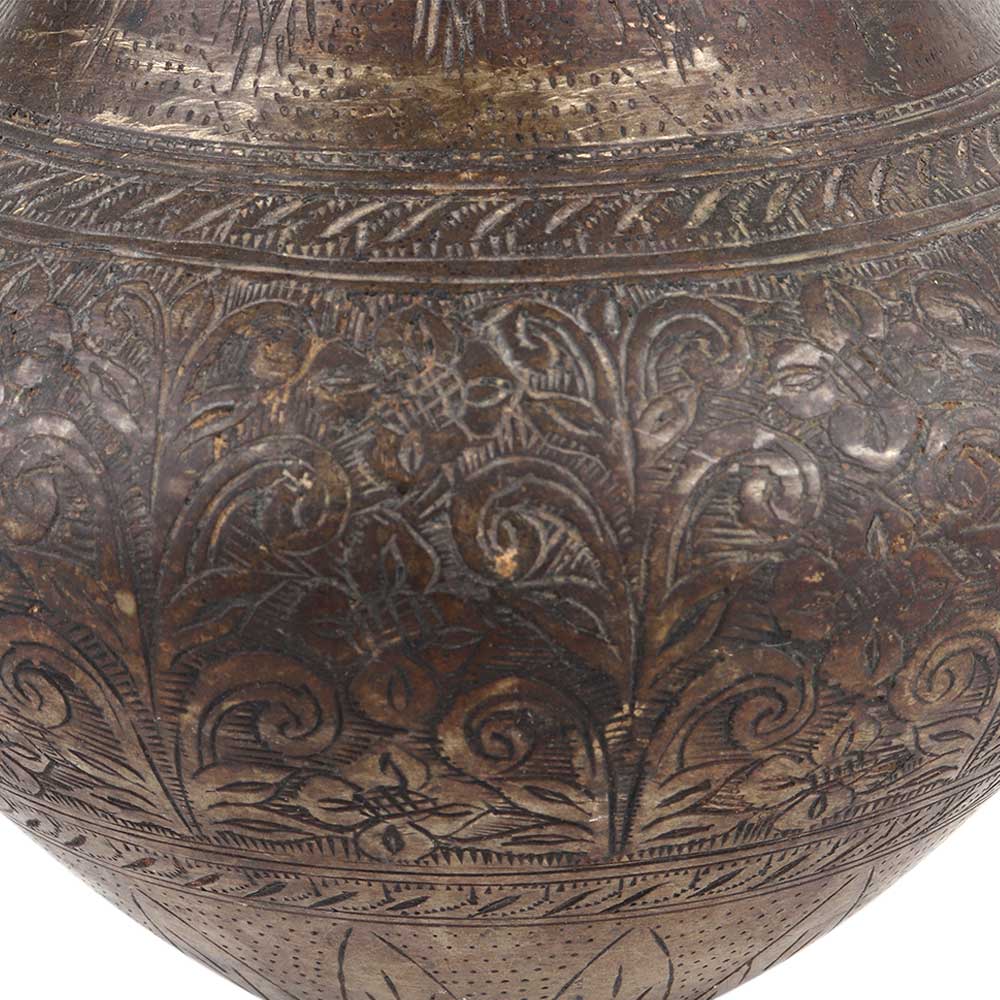 • Old Brass Pot Engraved With Flowers And leaves Pattern