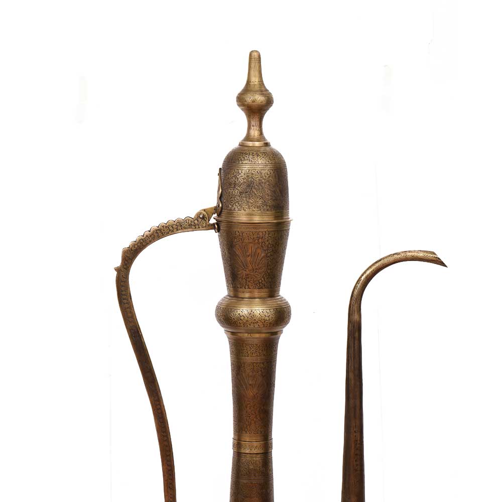 • Old Brass Surahi Ewer With Etched Floral Design