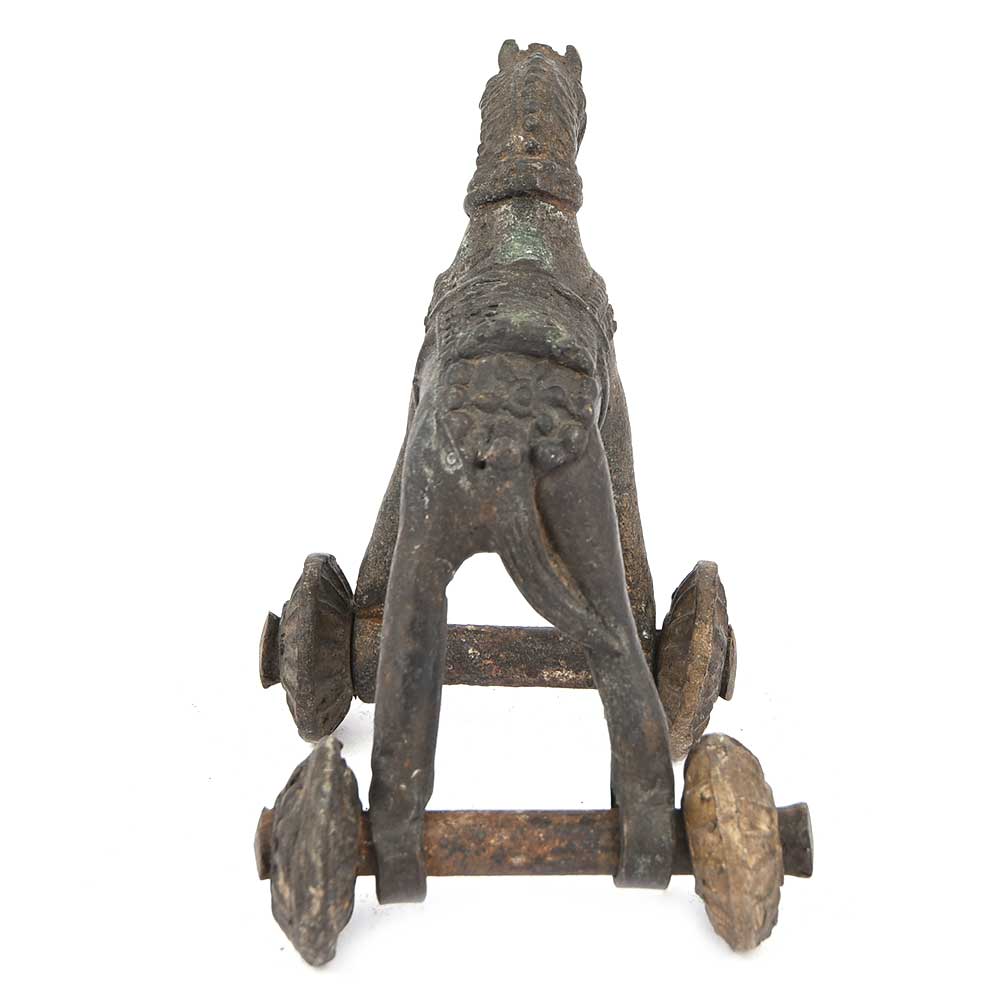 Old Brass Temple Toy Horse on Wheels