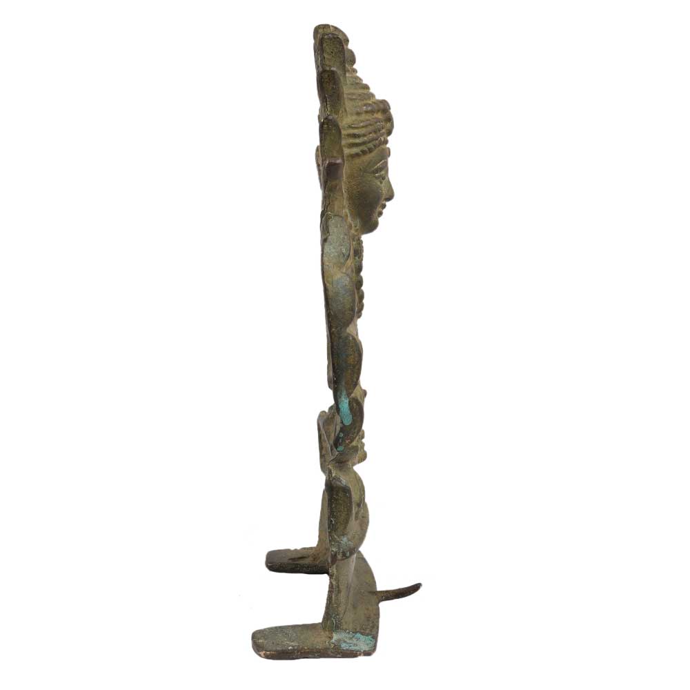 • Old Brass Tribal Goddess Mata Statue With Unusual Outfit