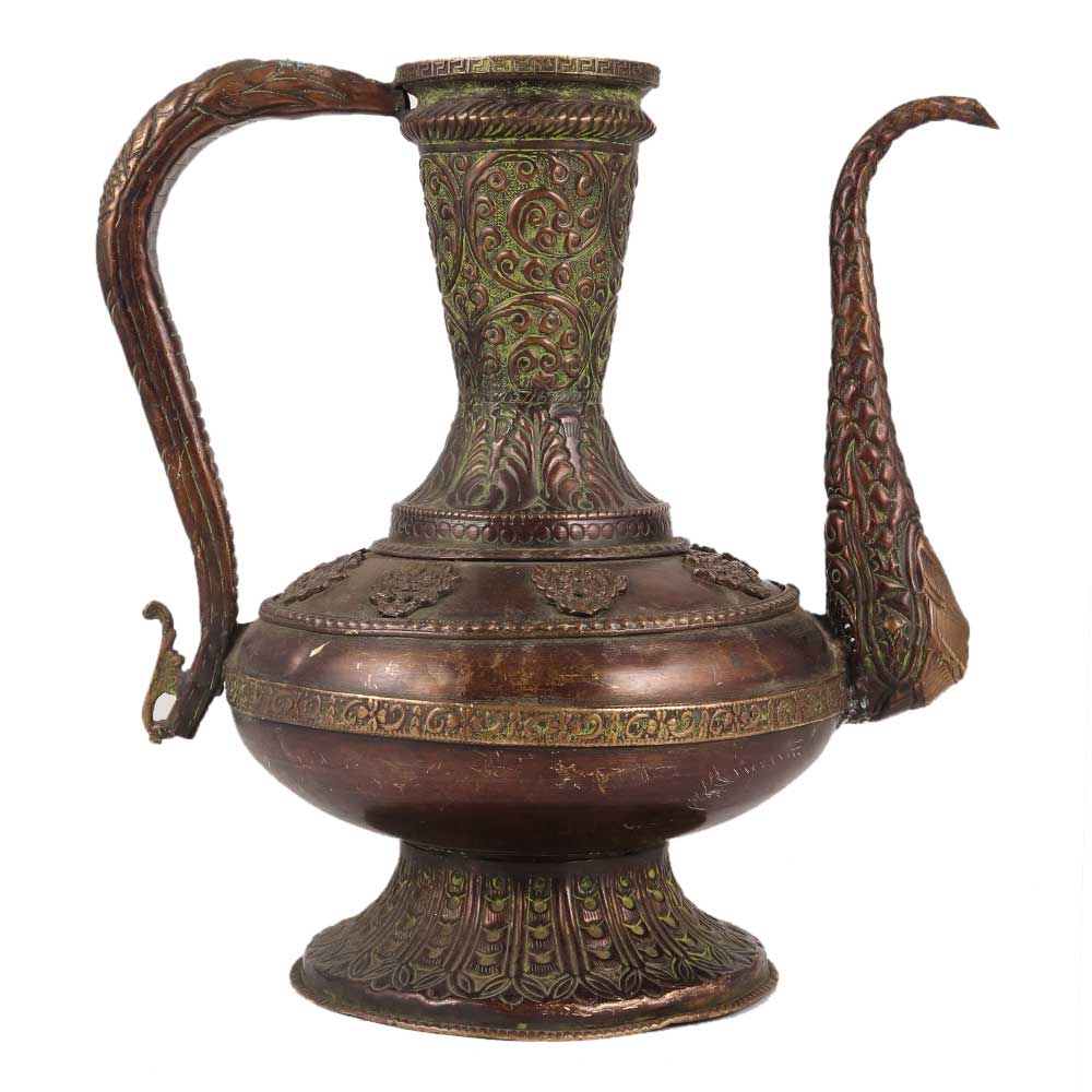 This elegant copper wine surahi with foliage sequence and Islamic design engraved style would make an ideal treat for any wine enthusiast. It would look great in a wine cellar, Butler's Kitchen, console table, or local pub. The surahi would make a wonderful Christmas present for friends and relatives.