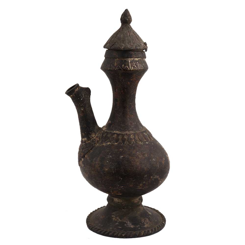 Old Engraved Brass Munhall Water Pot With Lid And Spout