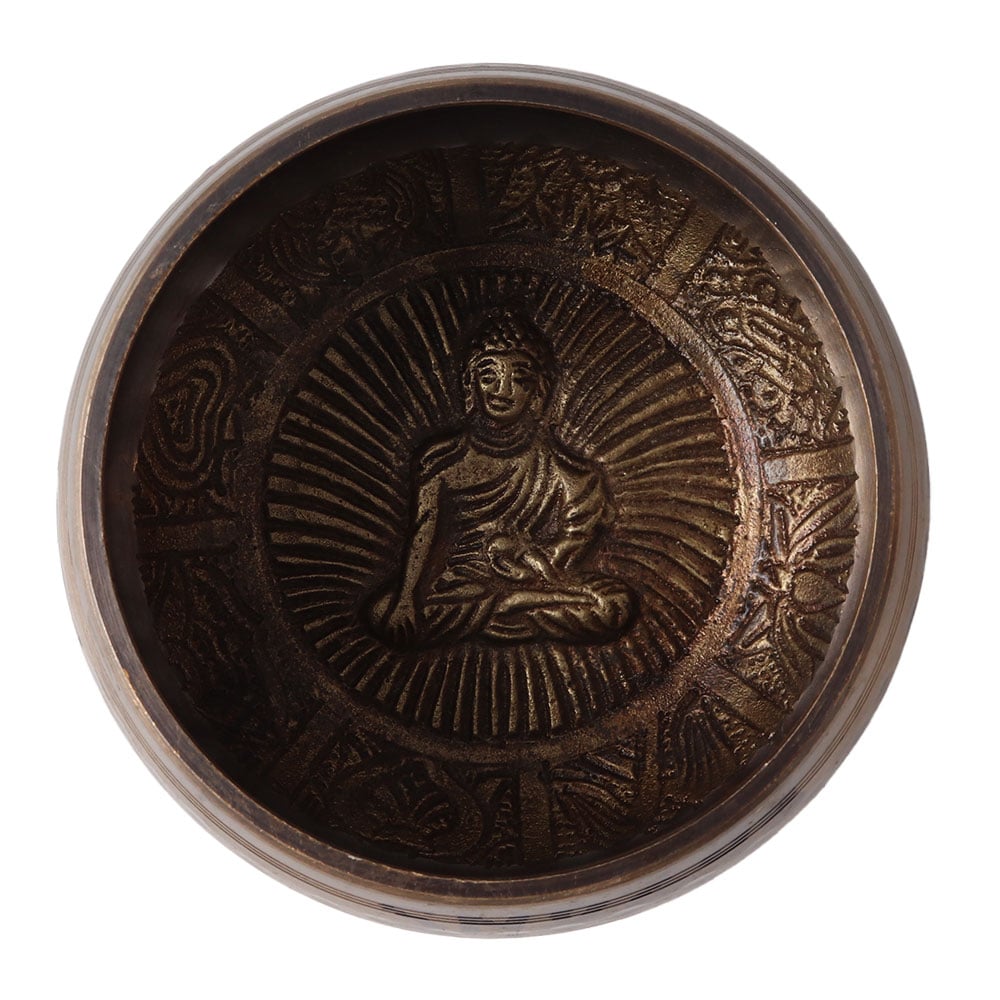 The antique-inspired brass finish of this bowl provides an elegant and rustic charm that complements both traditional and contemporary spaces. Its warm, golden hue and textured surface make it a stunning decorative piece, whether displayed on a shelf, altar, or table. It captures the essence of ancient traditions while providing a modern, meditative experience.
