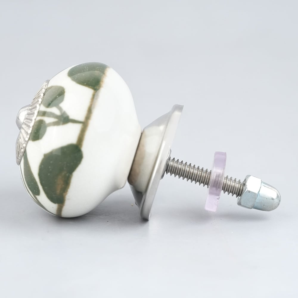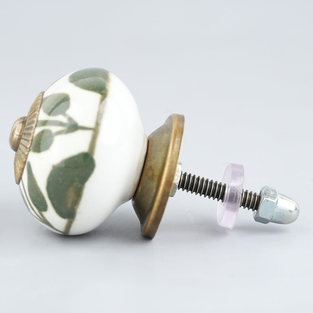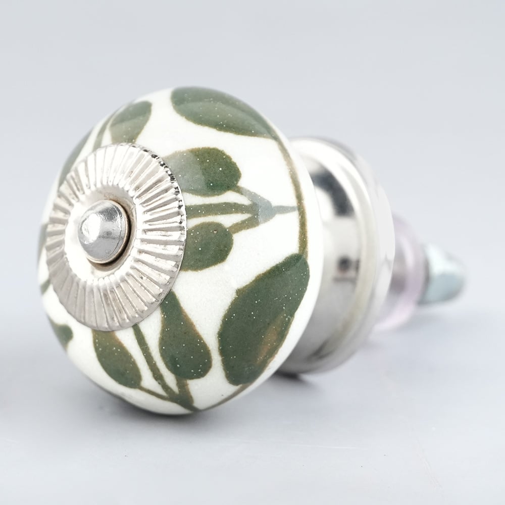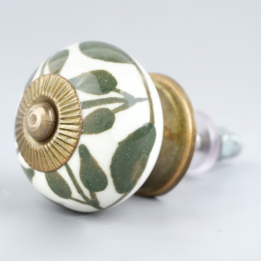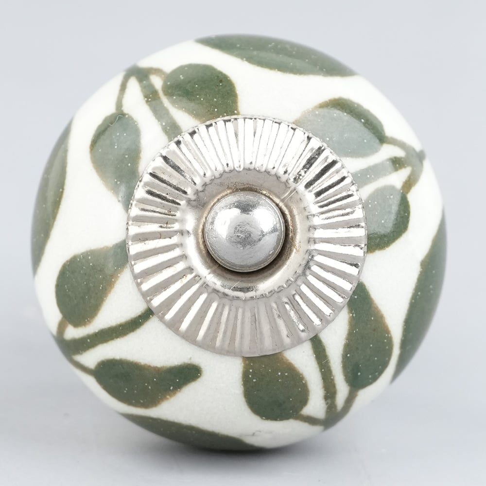 Old Green Floral Ceramic Knob