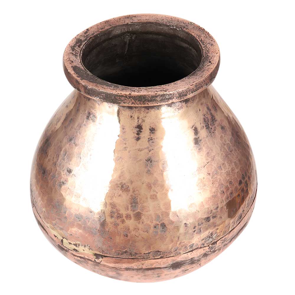 This copper water pot was handcrafted by artisans in the village of India Pure for  storage, special occasions, wedding ceremonies, and so on. Copper pot has a clean and smooth body and is a high-quality holy water pot. In the Vedas, it is regarded as a symbol of enormous amount and the "origin of existence." In the hands of Hindu deities such as the creator god Brahma, the destroyer god Shiva as a teacher, and the goddess of prosperity Lakshmi, the pot is frequently seen as an attribute.s