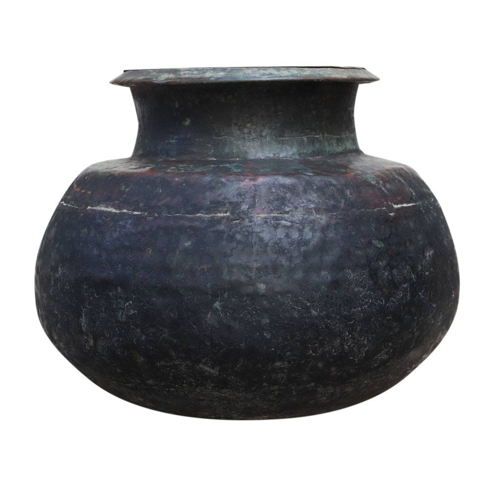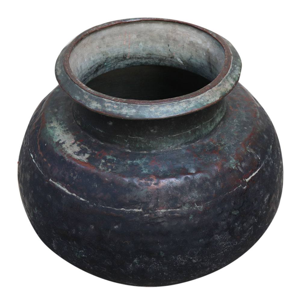 Old Brass Pot is a magnificent item for the kitchen countertop and farmhouse, for meditation, as a flower pot, wedding, celebration, and housewarming present. It is made of brass and has a rounded shape with a heavy border.