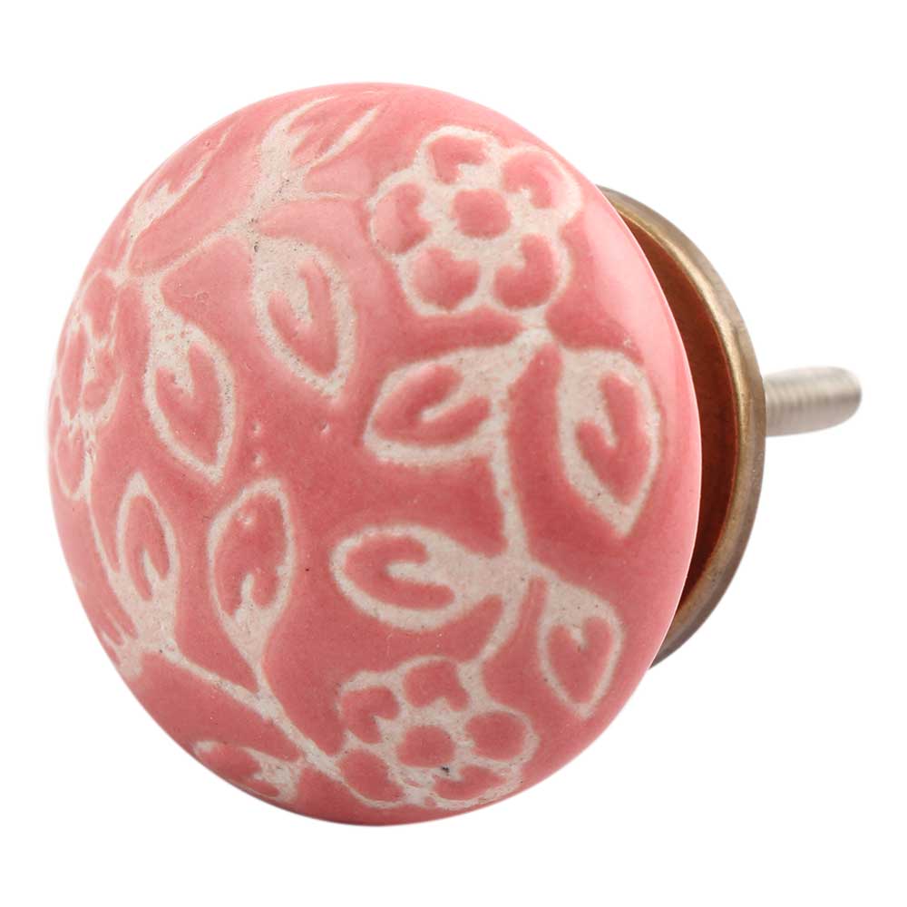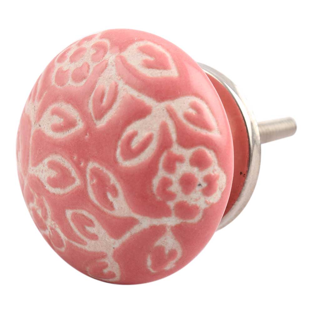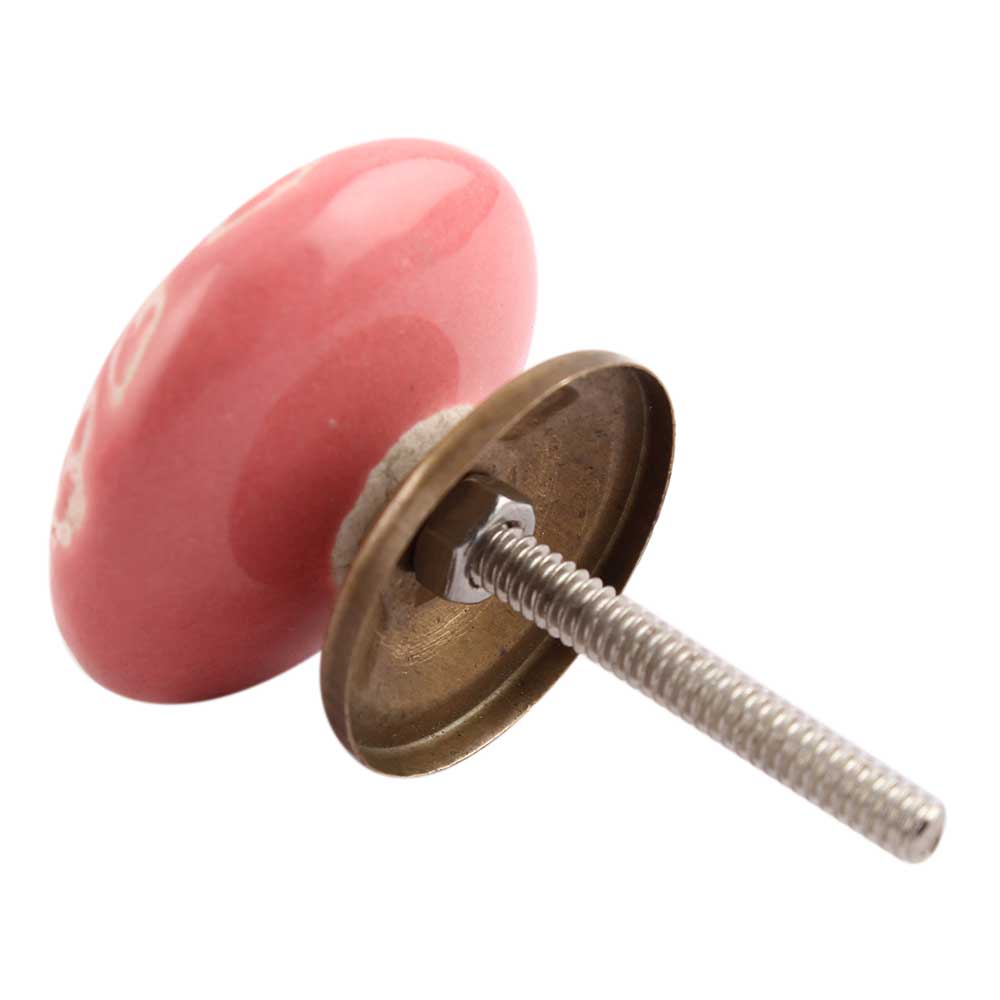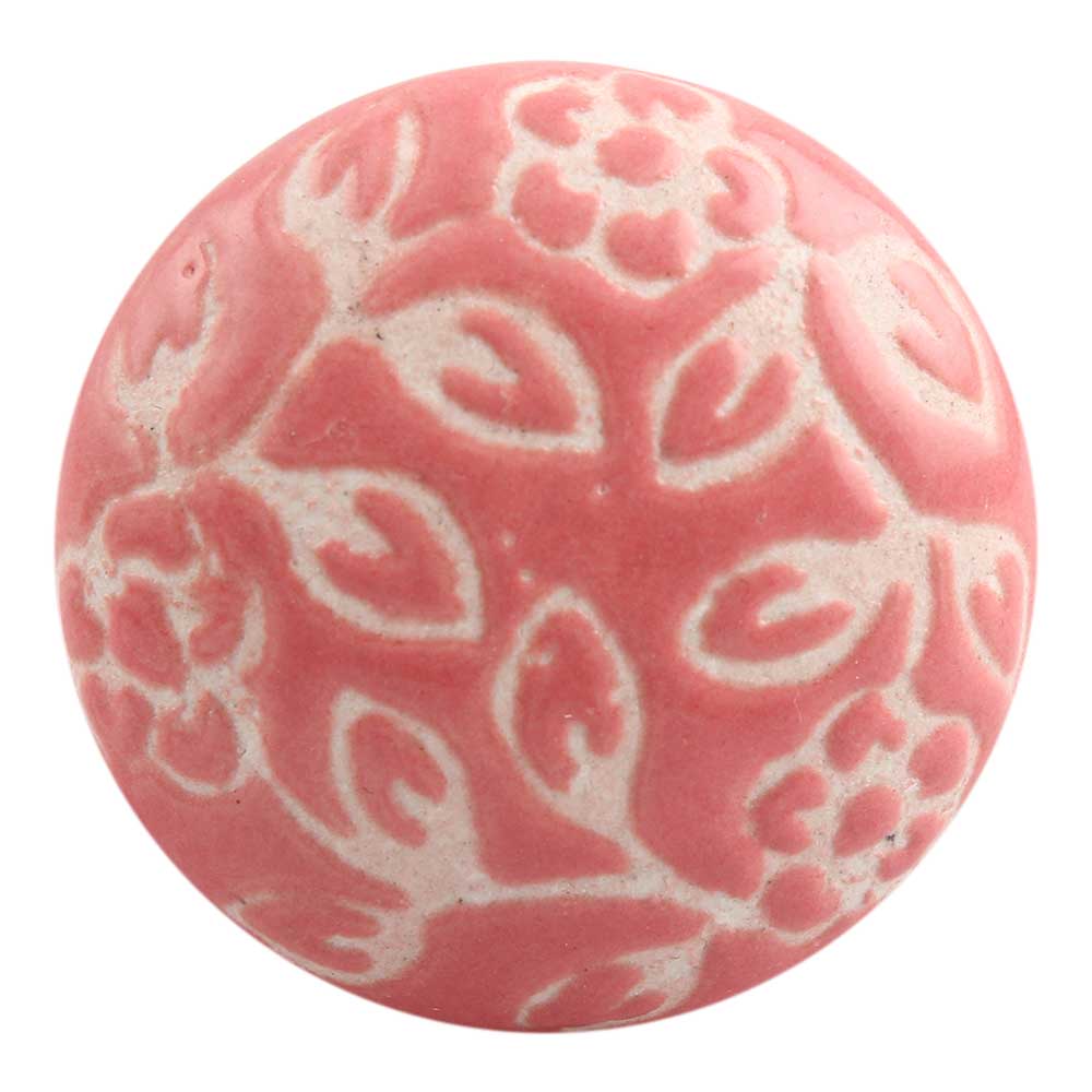 Old Pink Etched Flat Ceramic Cabinet Knob