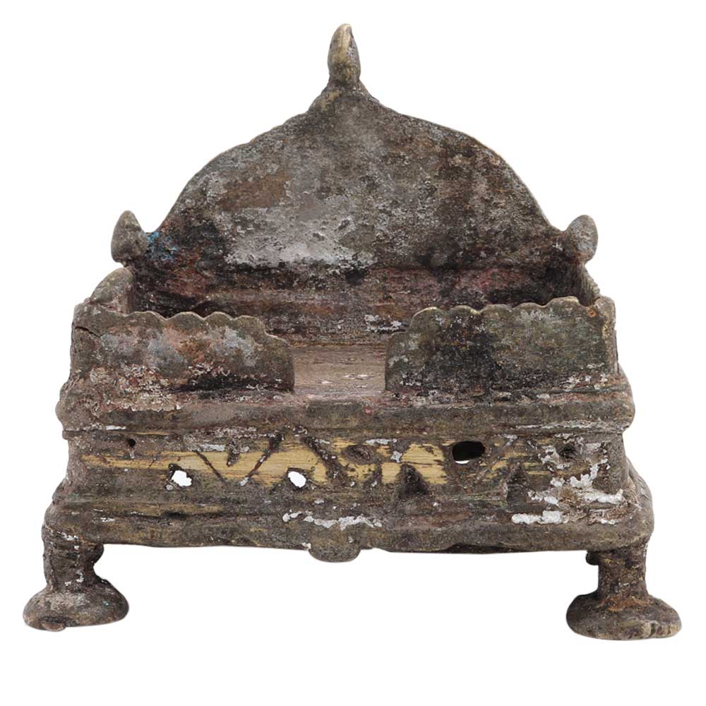 Old used Brass Krishna bed is made by indian artisans. The bed is attractively detailed with finialised posts with elaborate geometric design with large openwork and ridged trim. Used in Mandirs/ Temples as Well as in Home. It is Used for Worshipping Purposes. Wedding gift, diwali gift for near and dear ones.