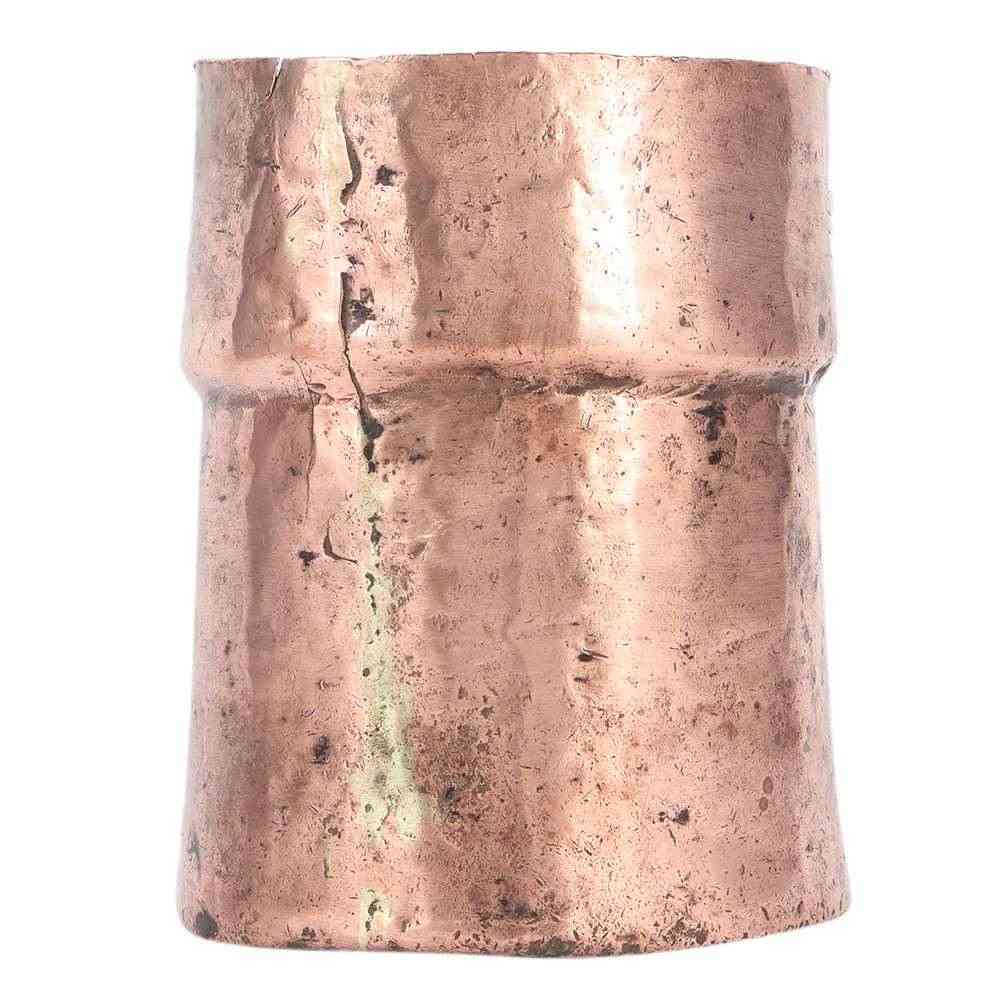 This brass grain or liquid measure heavy copper cup with brass bands on the rim and base that was used in ancient times before actual weights were discovered. It has a fine natural aged patina.