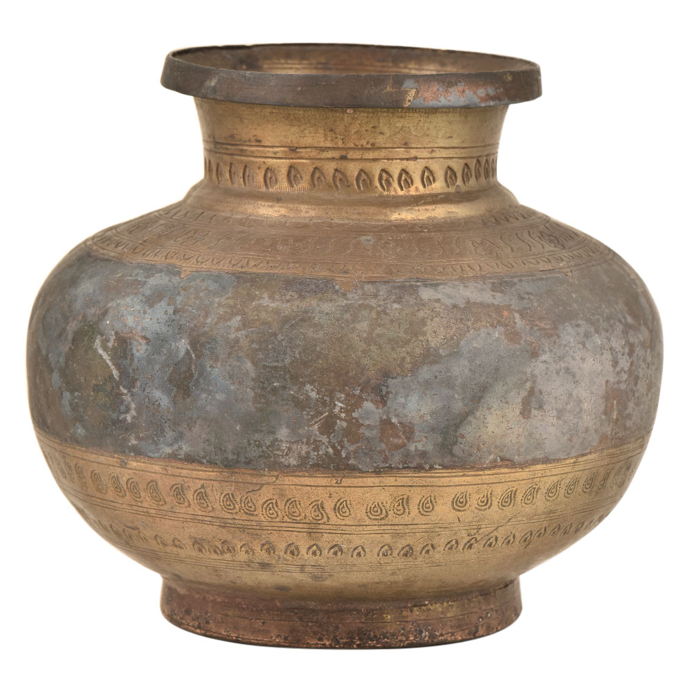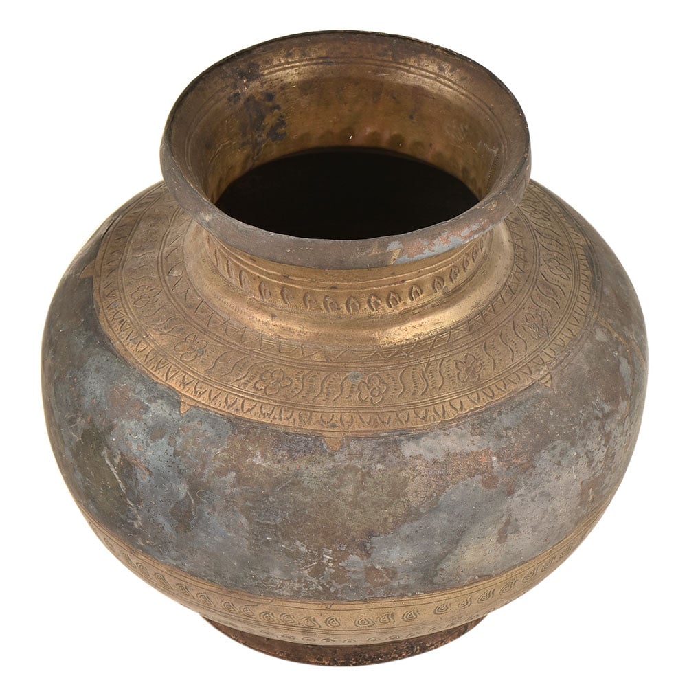 Engraved Brass Water Pot (Lota) From North India is Handmade by the Local Artisans and Each Pot has a Distinct Design No Two Pots are Identical. The Pot Carries the Distinct Design of the Time. This Exquisite Piece is a Treat for Collectors and Makes for a Wonderful Decor Accent.