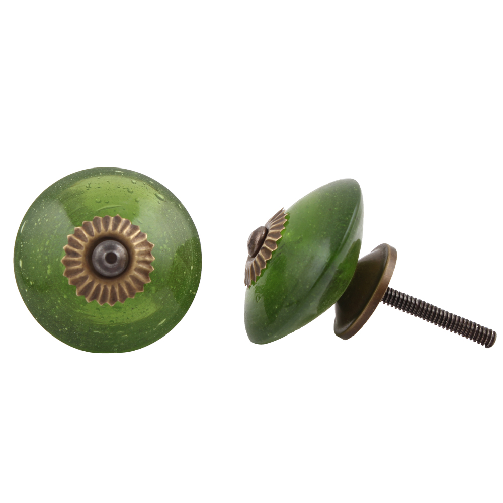 Olive Drab Wheel Glass Knobs. Ideal for Drawer, Dresser, Cabinet, Wardrobe, Cupboard and almirah
