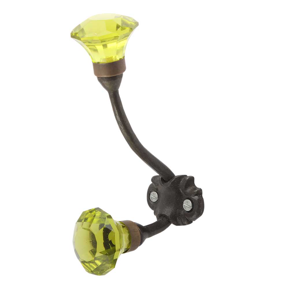 Olive Green Diamond Glass Cut Iron Hook