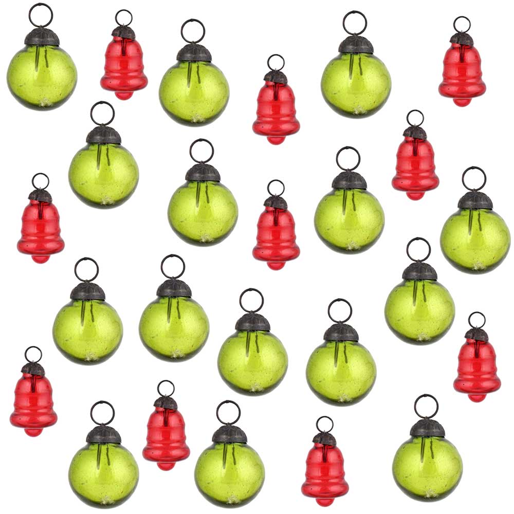 Olive Green Red Combo Glass Tiny Christmas Hanging Set of 25