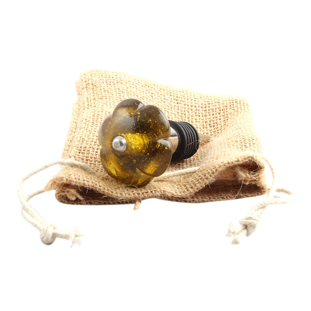 Olive Melon Glass Wine Stopper.zinc alloy wine bottle stopper with attractive Jute Bag Packaging.