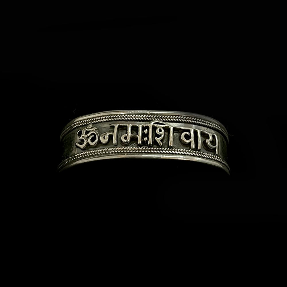 OM Namah Shivaya Oxidised 92.5 Sterling Silver Kada For Men